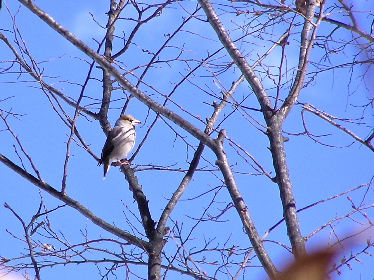 シメは太いくちばし、いかつい顔が印象的ですね。北海道からやって来るそうです。