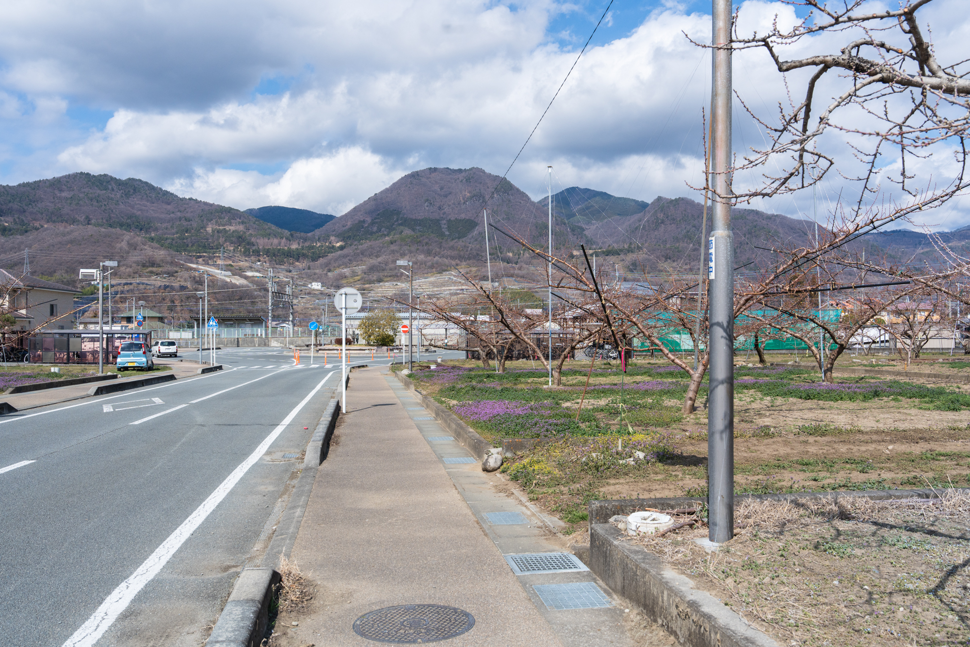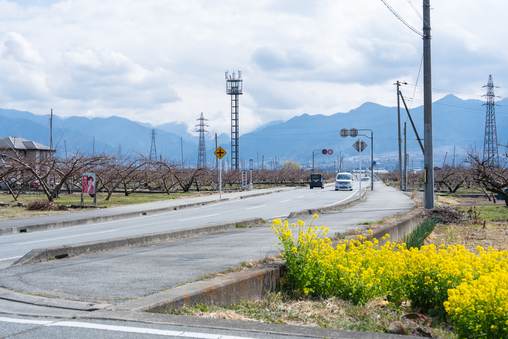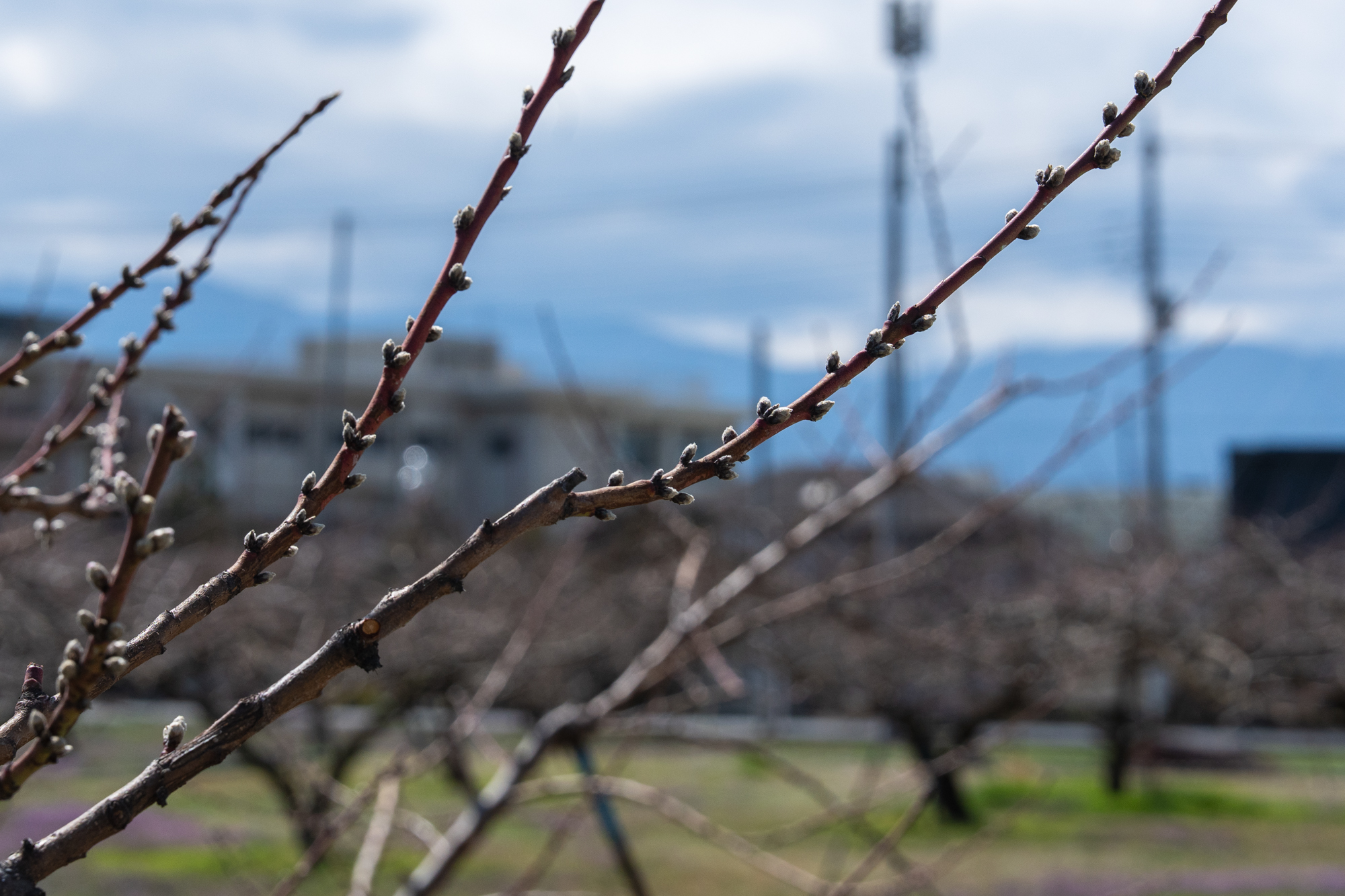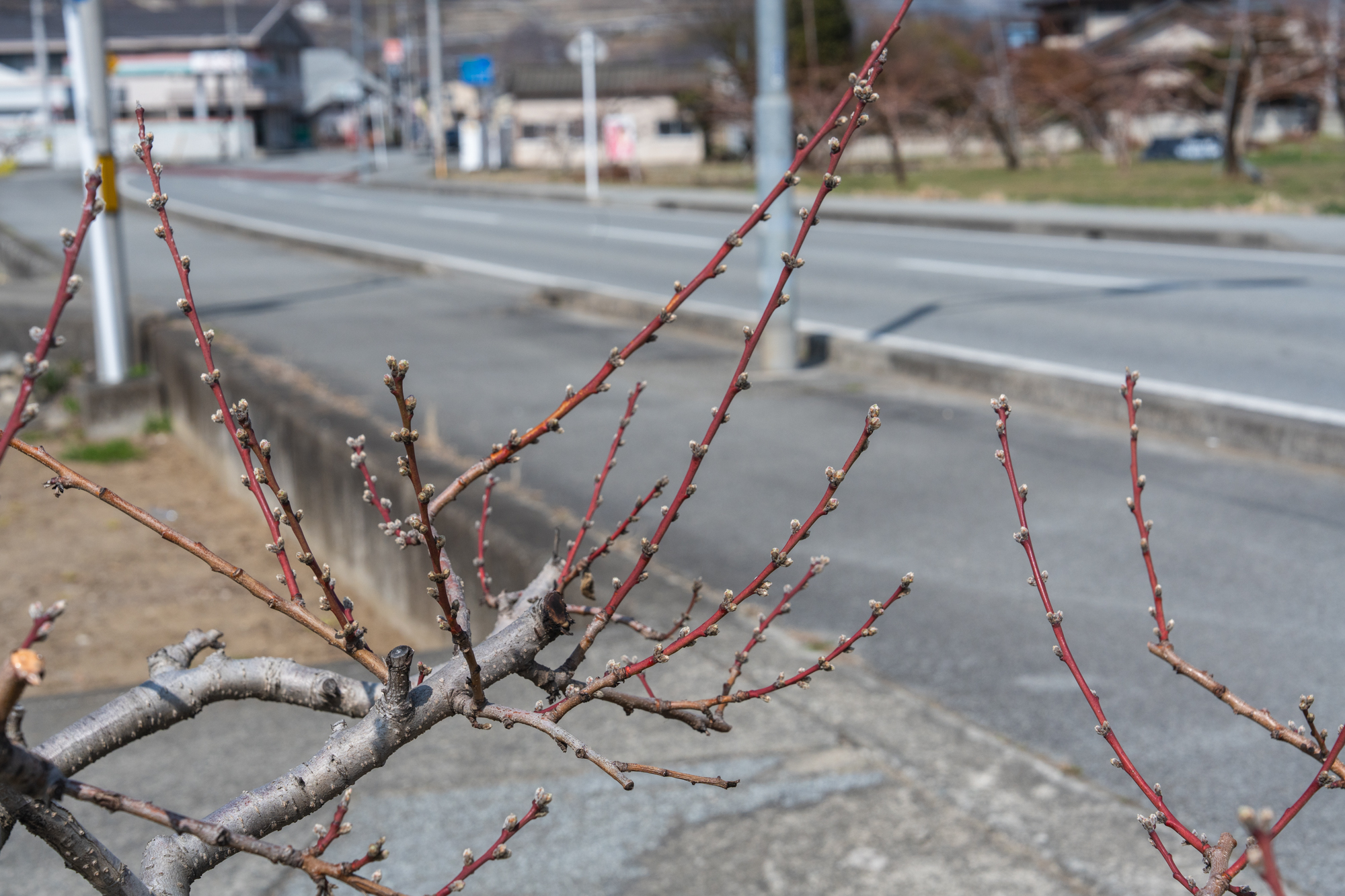 春日居駅前、ピーチライン沿いともに、現在は蕾がふくらみ始めた段階といったところでしょうか。開花まではもう少し時間がかかりそうですが、笛吹市内でも先頭を切って咲き始めるエリアとなっています。