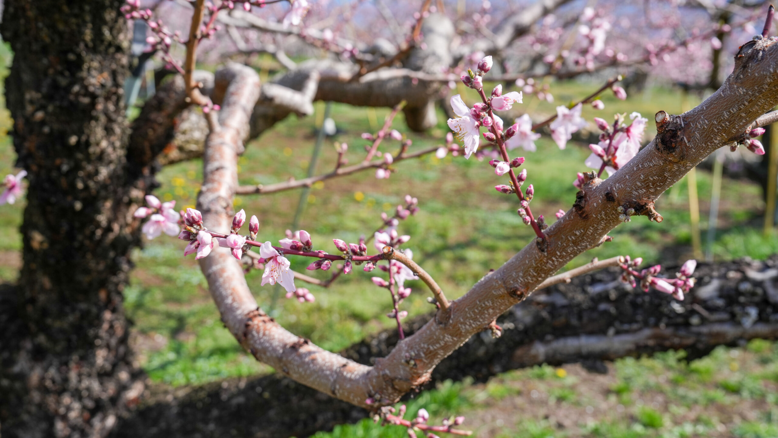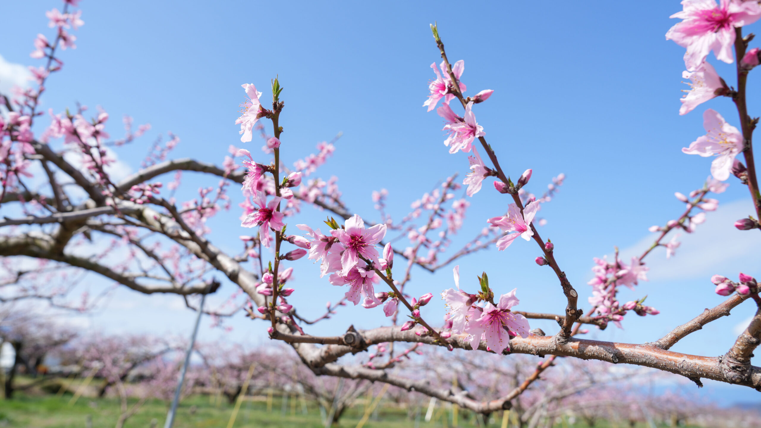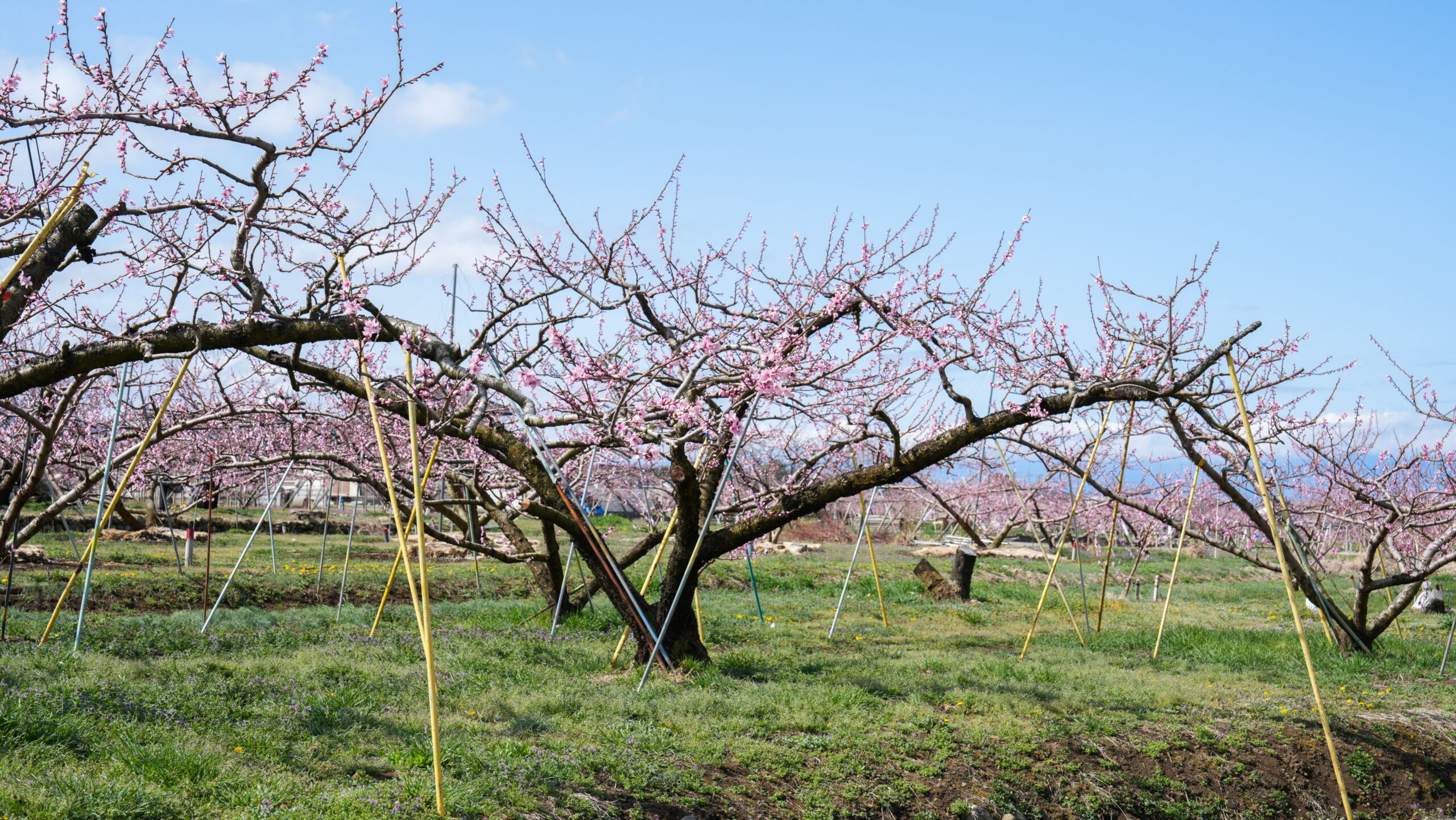 2026年シーズン第1回目の更新となります。このエリアは桃の里スポーツ公園を通り過ぎてすぐのところです。ここは見晴らしがよく南アルプスを一望できます。菜の花も咲いており桃の花と一緒にお楽しみいただけます。さて、桃の花の咲き具合いですが、暖かい気候が続いたため今にも花開きそうなふっくらとした蕾がほとんどで、あと少しで見頃を迎えそうです。