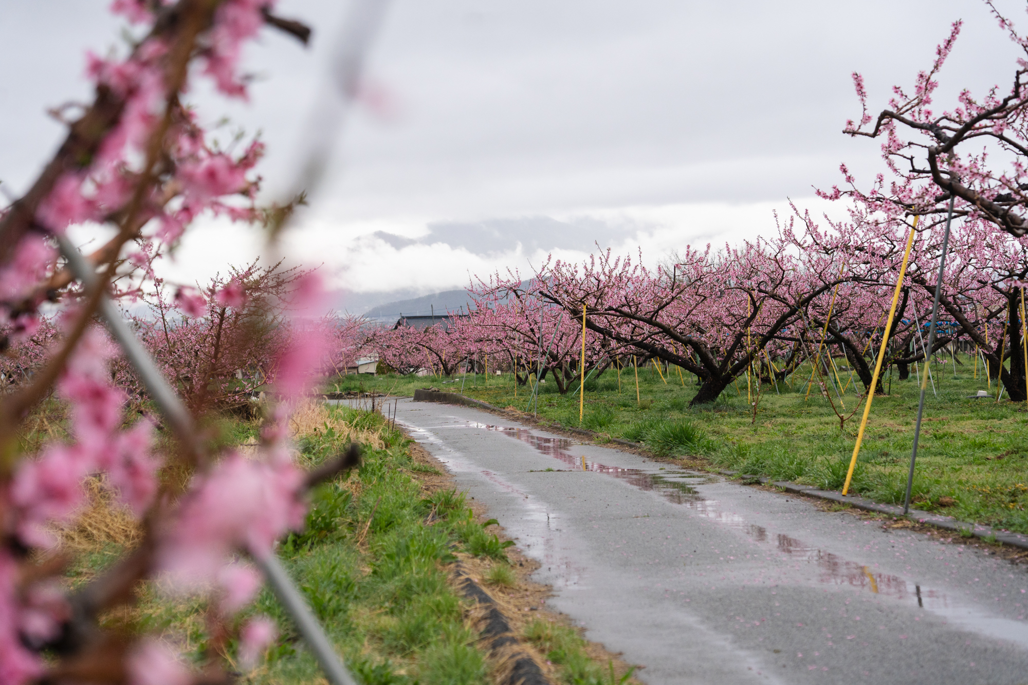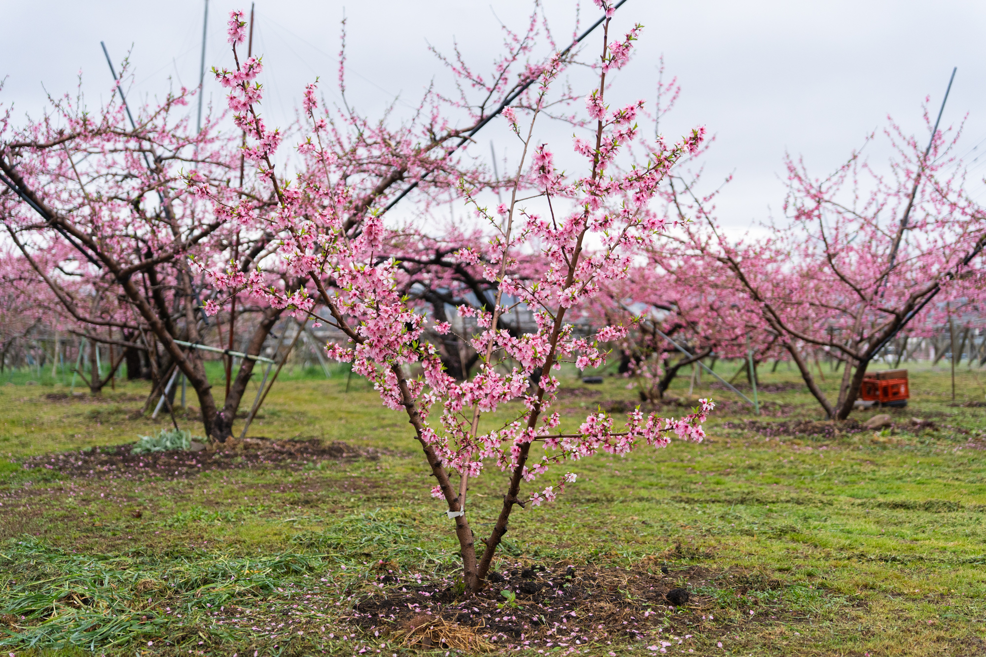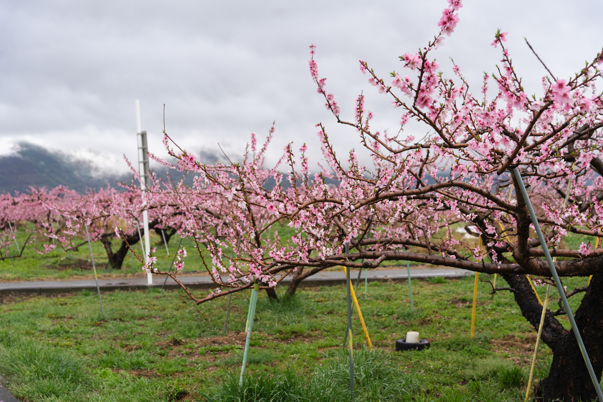 中三日での更新となります。見頃を迎えたタイミングで雨が降ったこともあり、全体としてはややピークを過ぎた印象です。品種によって開花の進み具合に差があるため、本都塚地区でももうしばらくの間、桃の花をお楽しみいただけそうです。