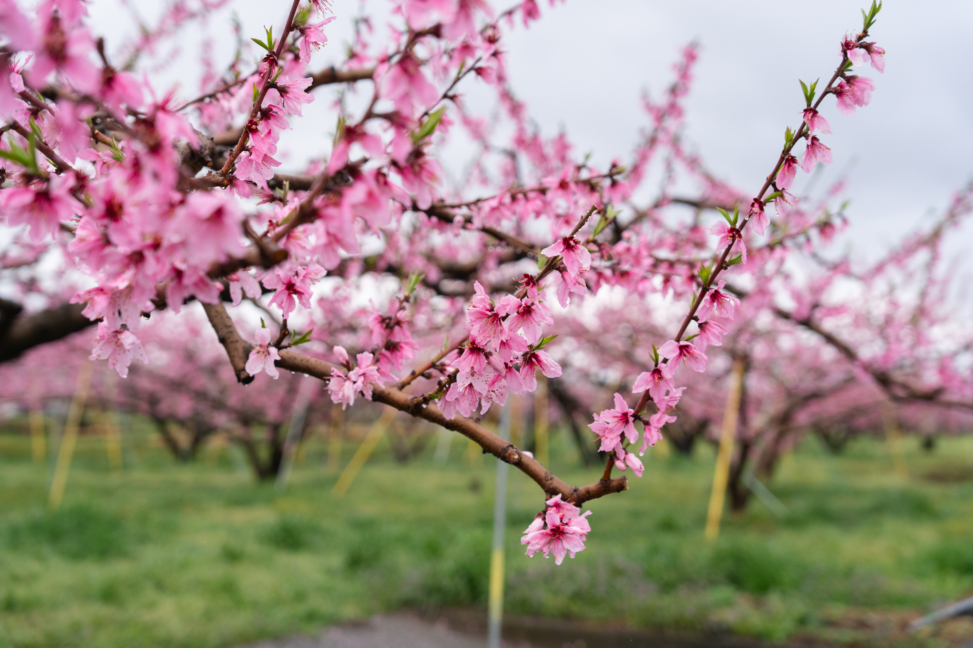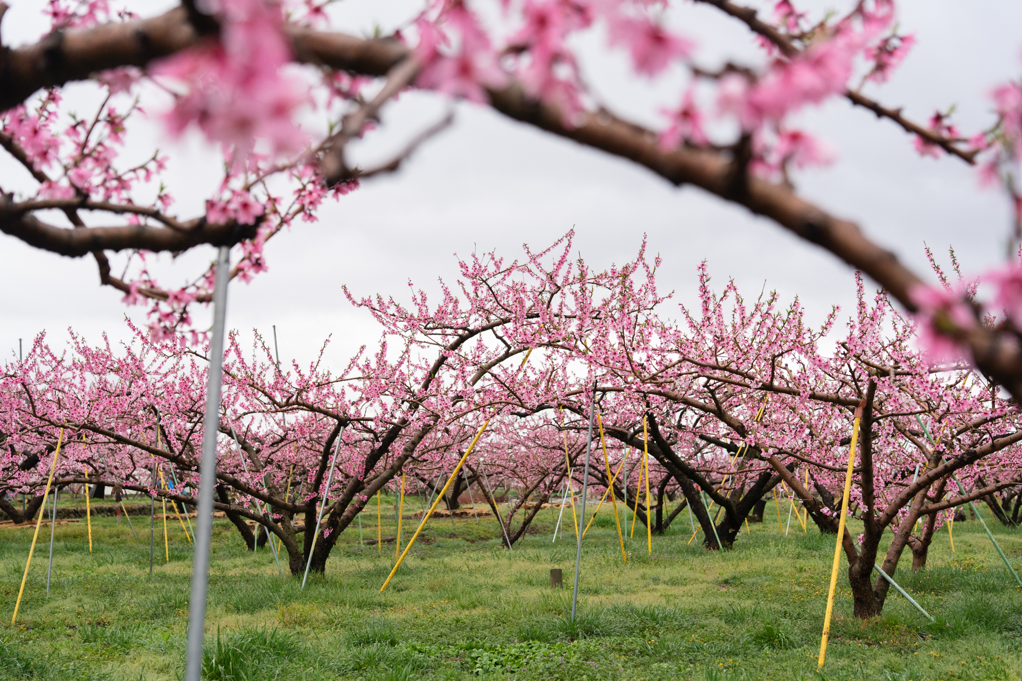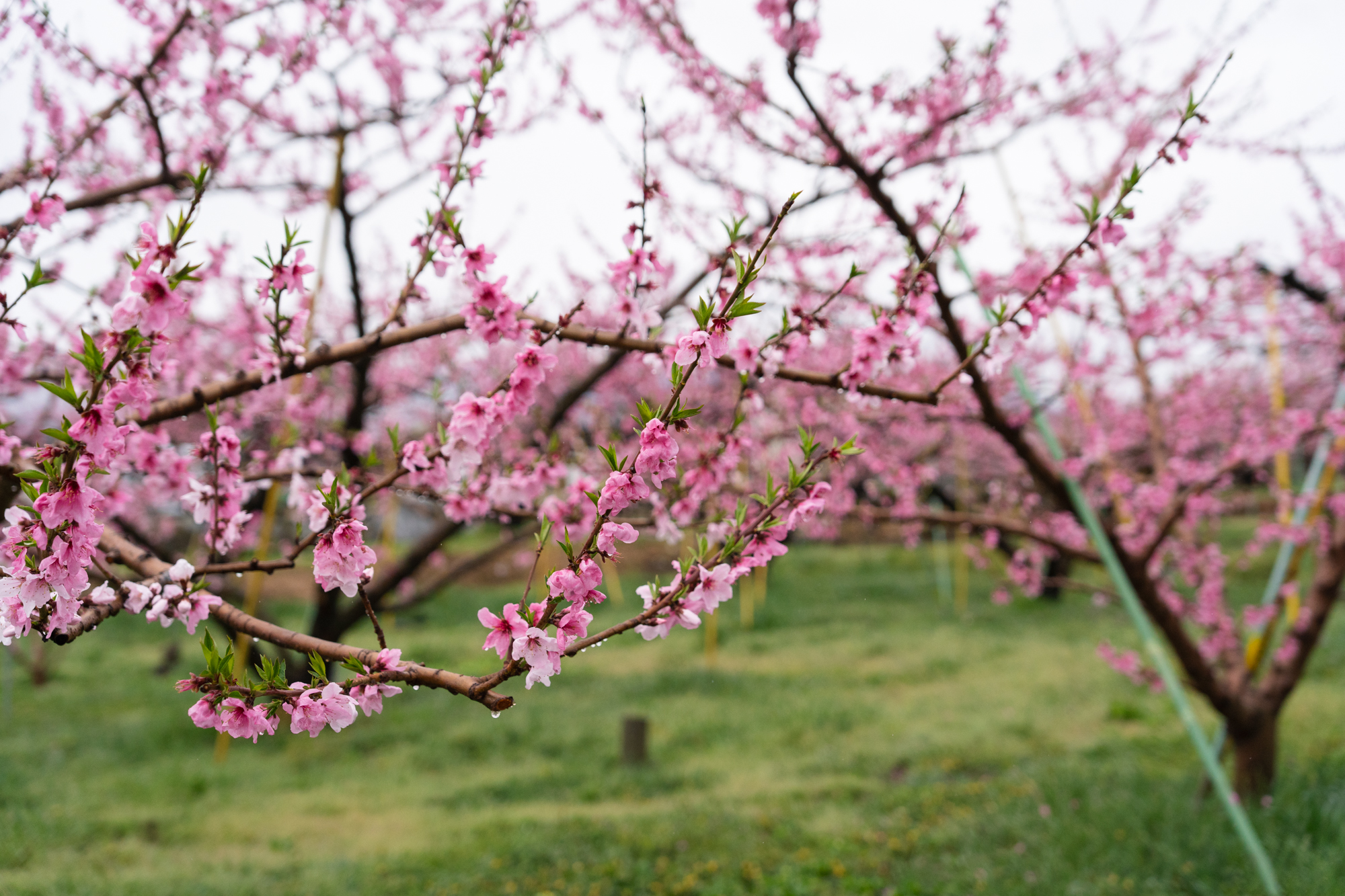 中三日での更新となります。見頃を迎えたタイミングで雨が降ったこともあり、全体としてはややピークを過ぎた印象です。品種によって開花の進み具合に差があるため、本都塚地区でももうしばらくの間、桃の花をお楽しみいただけそうです。