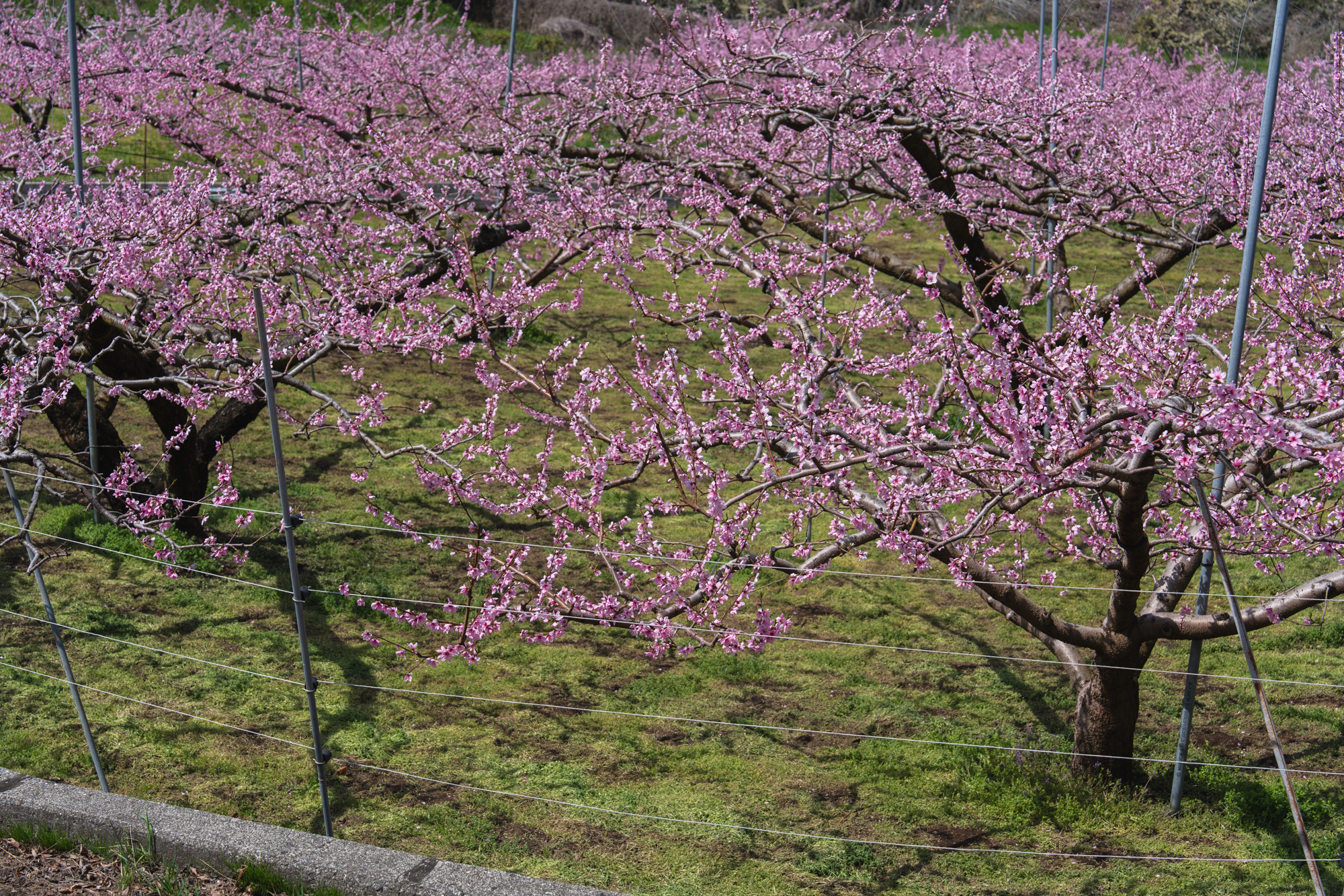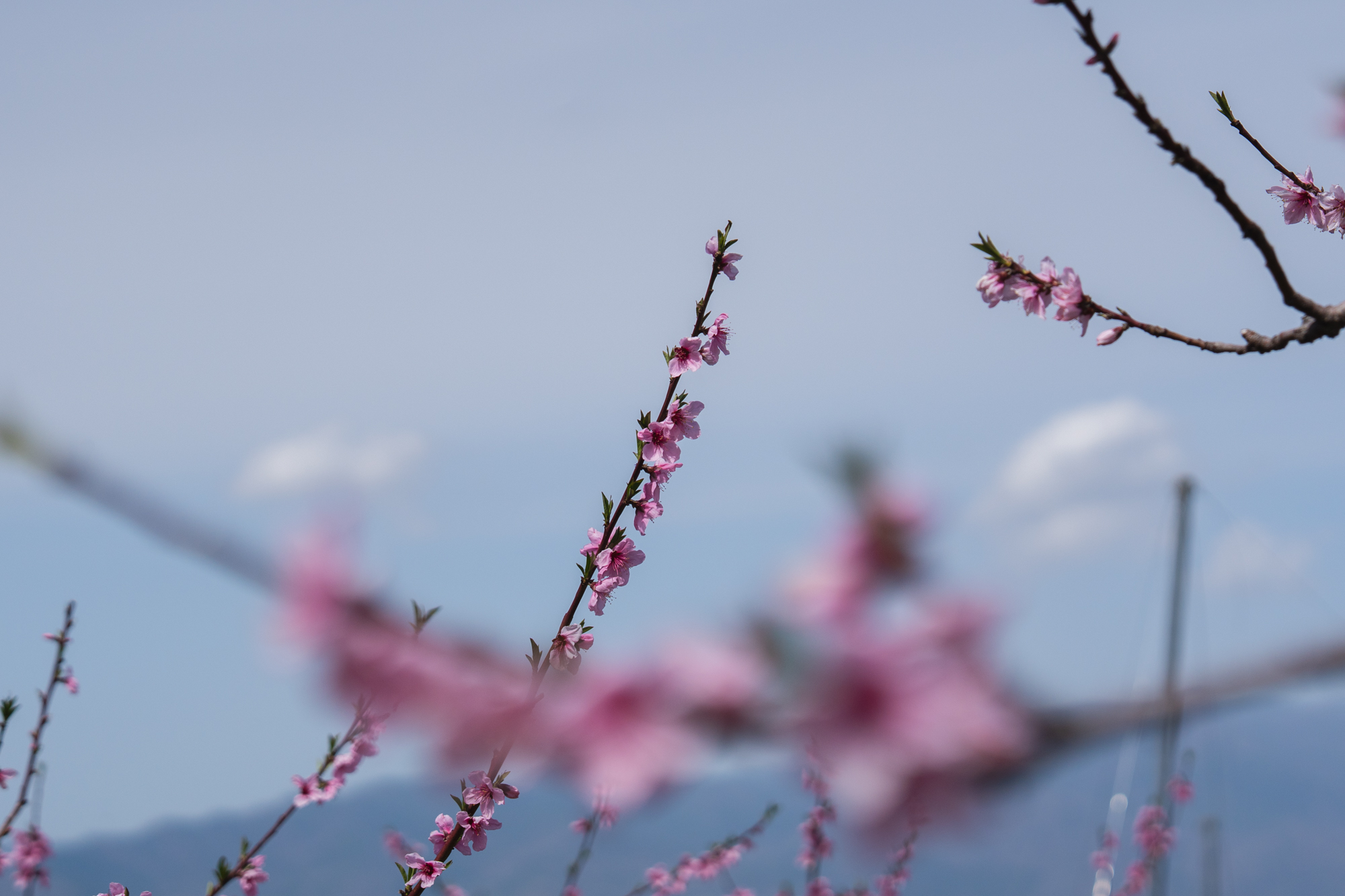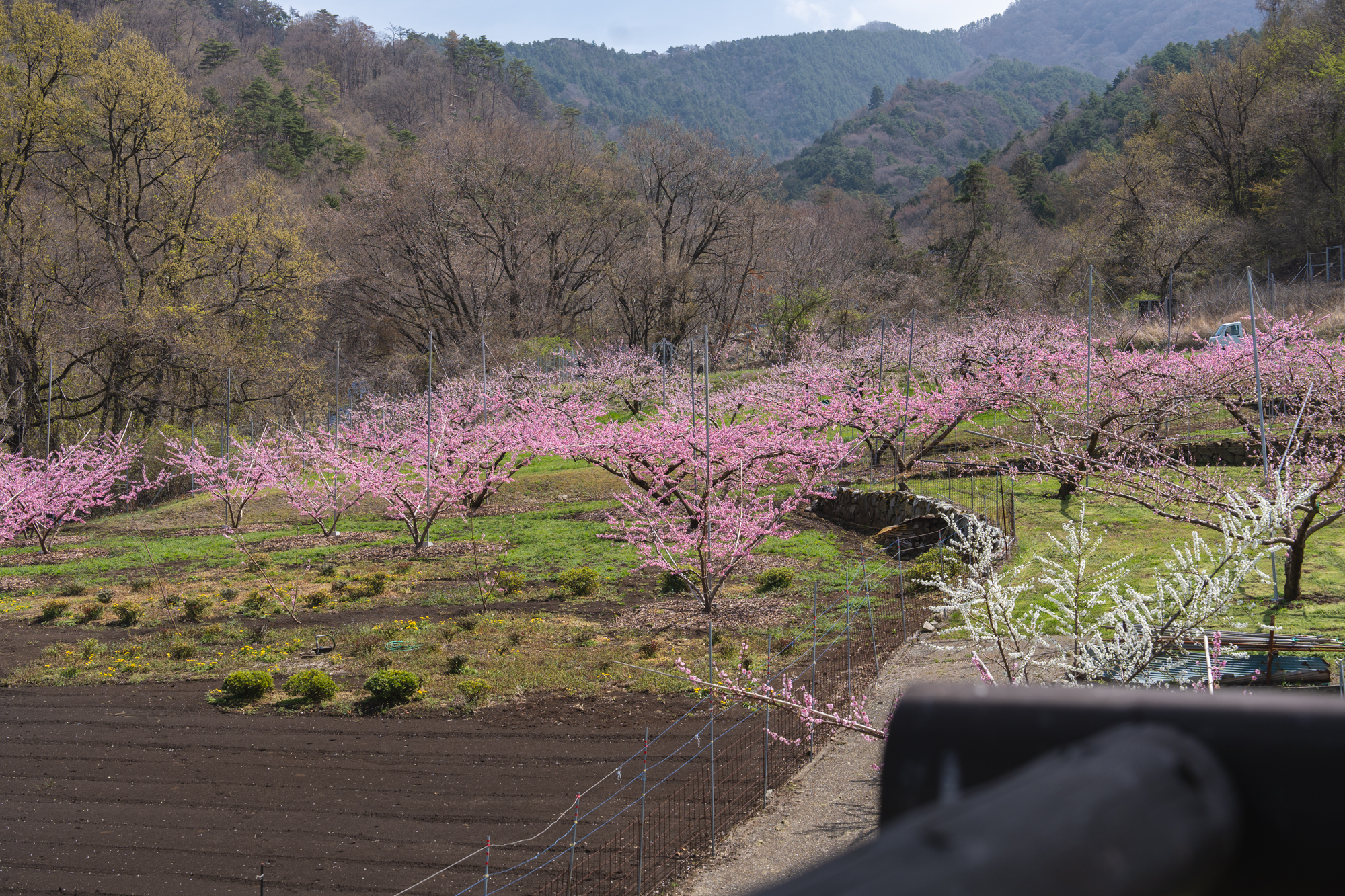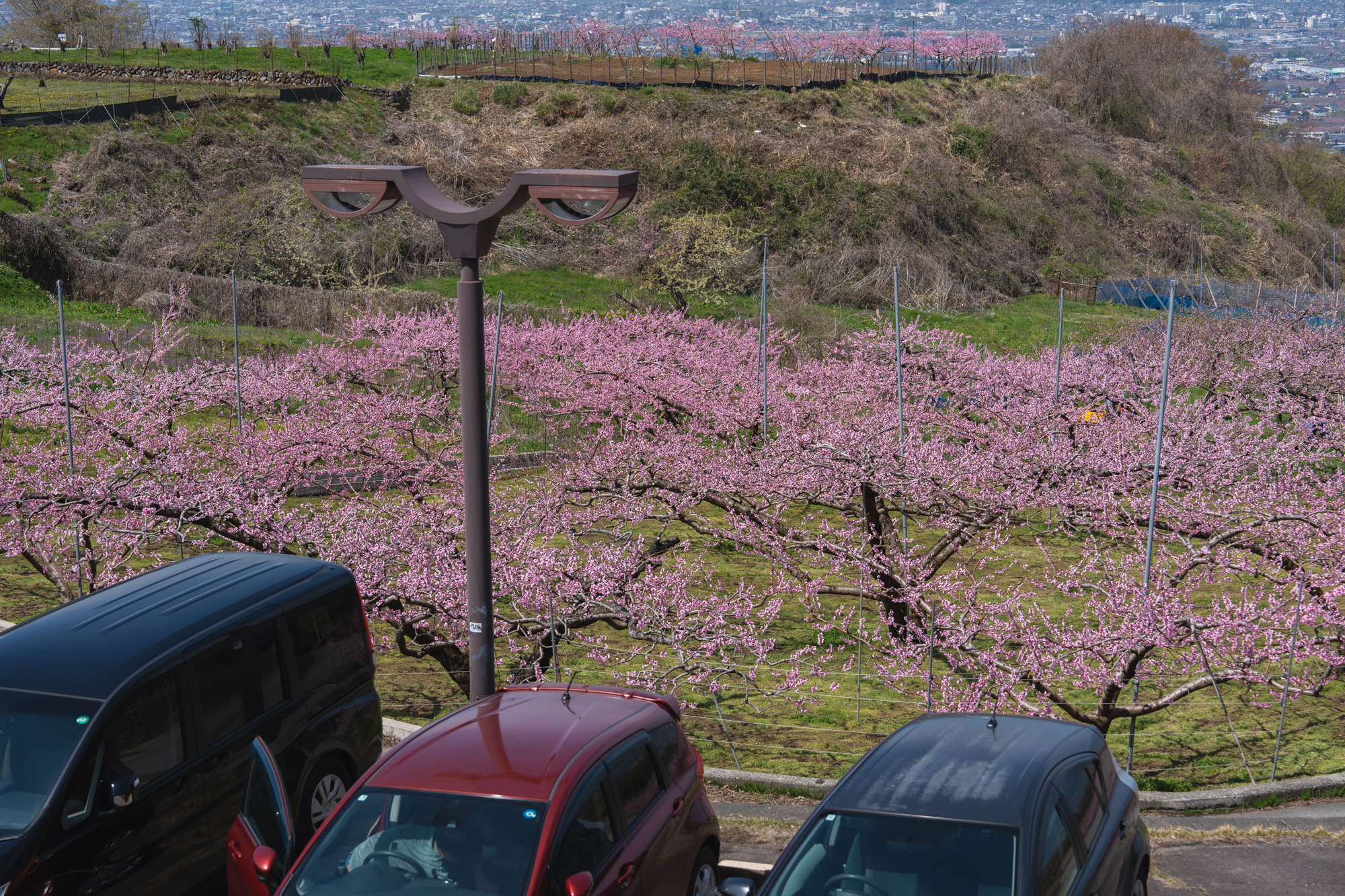 ここはいつ訪れても、眼下に広がる景色から吹き上げてくる風が心地よく、ゆったりとした時間が流れる場所です。すでに平野部では緑が目立ち始めていますが、花見台周辺ではもうしばらく桃の花を楽しむことができそうです。