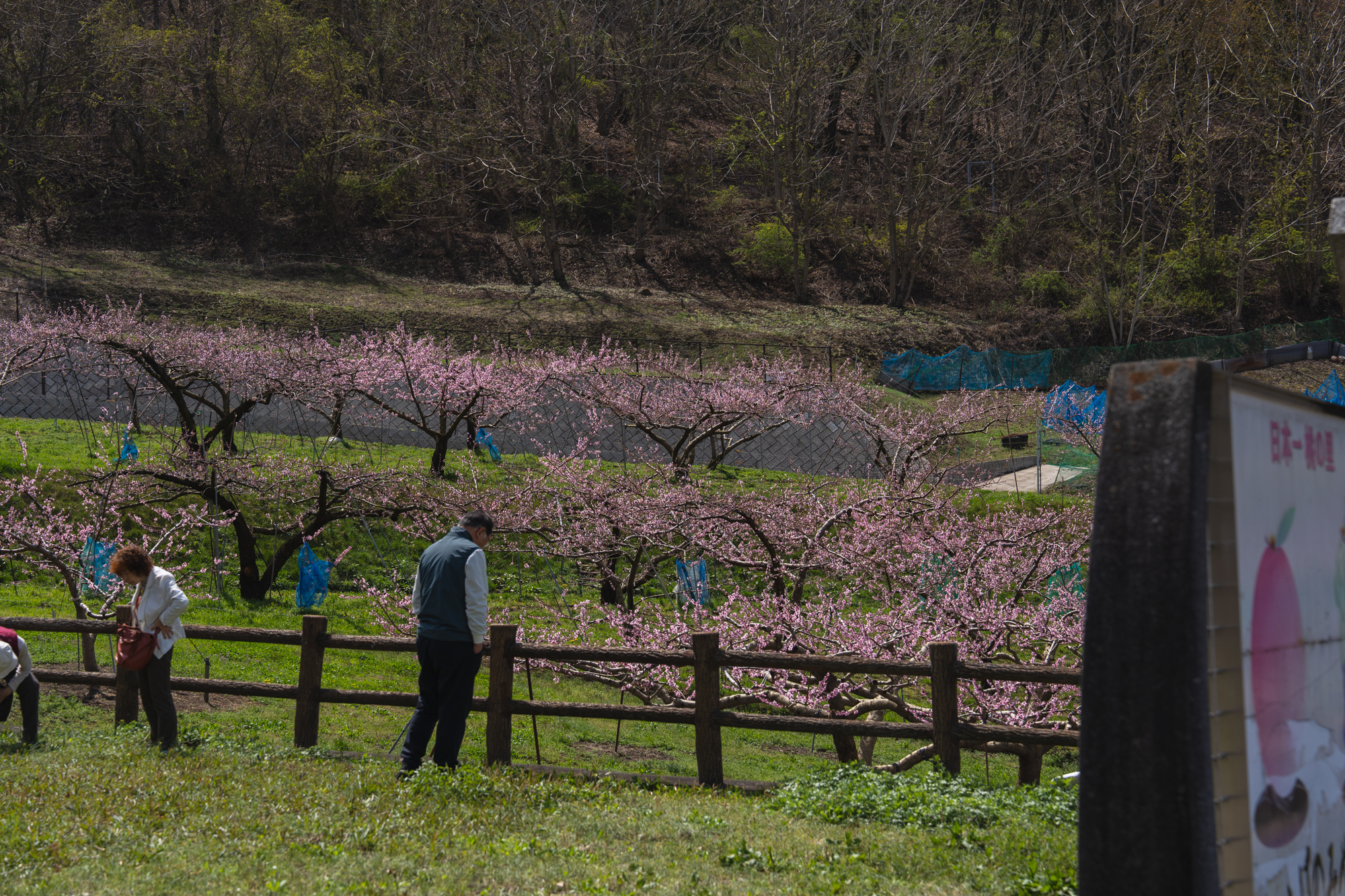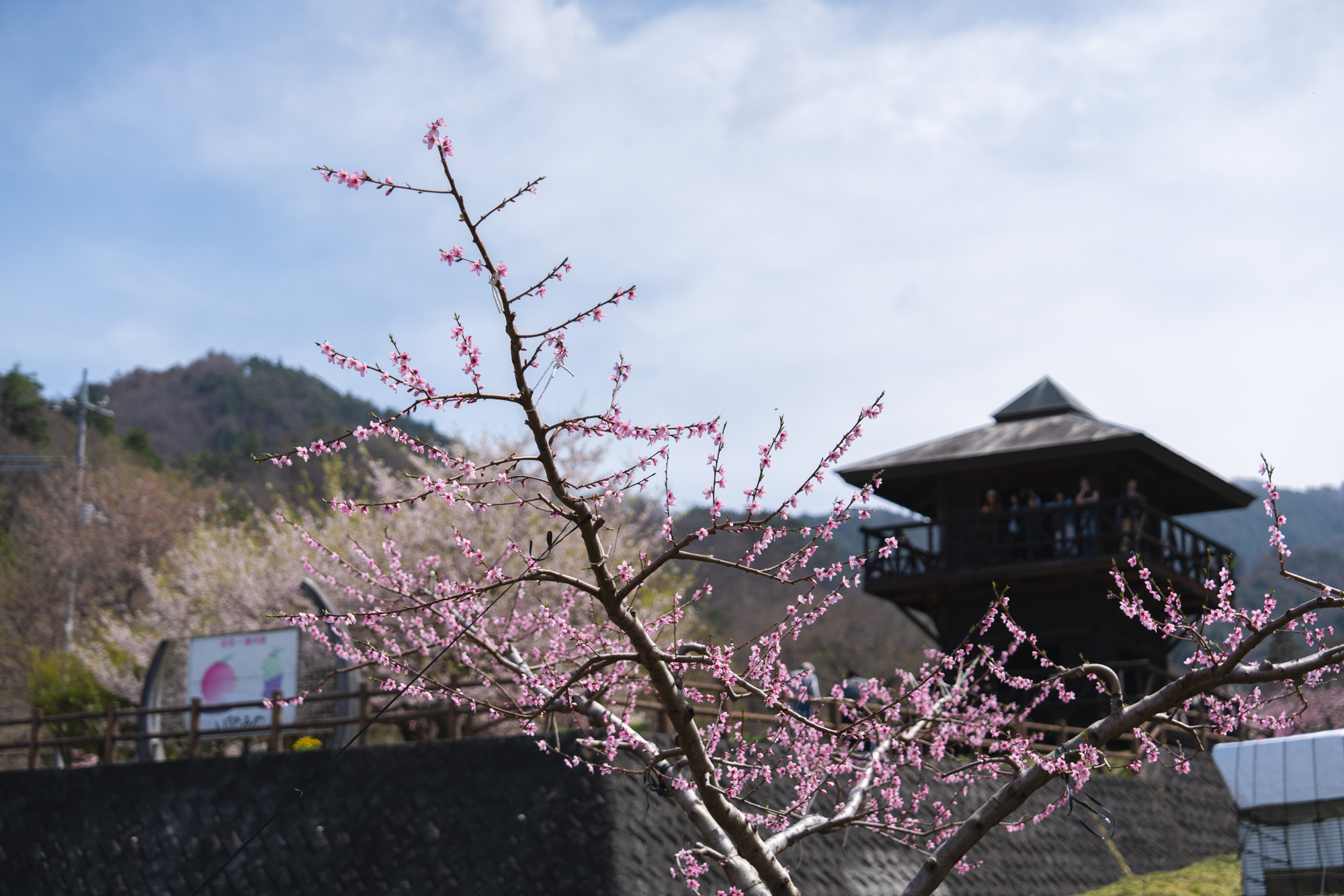 ふえふき旬感ネットで情報発信している桃の観測地点の中でも、1、2を争う高さに位置する一宮町花見台周辺でも、桃の花が見頃と呼べるほどまで開花が進んでいます。晴天となった今日は、これまでで一番の人出だったように感じられました。