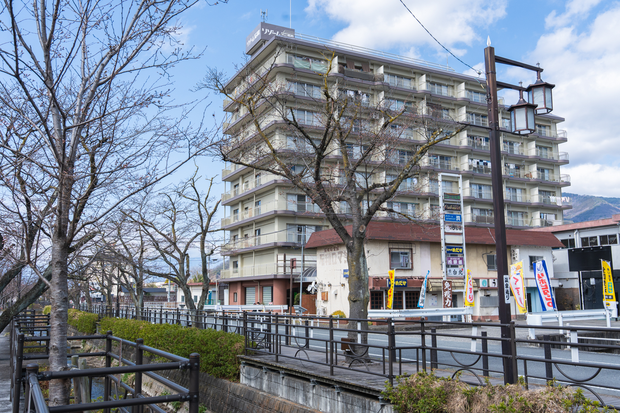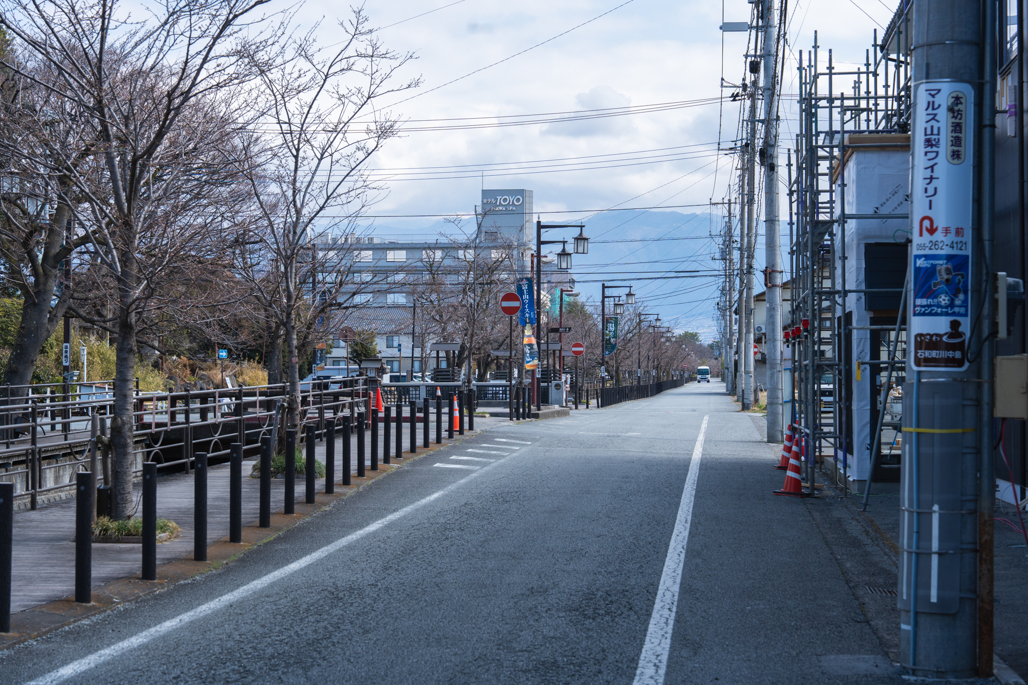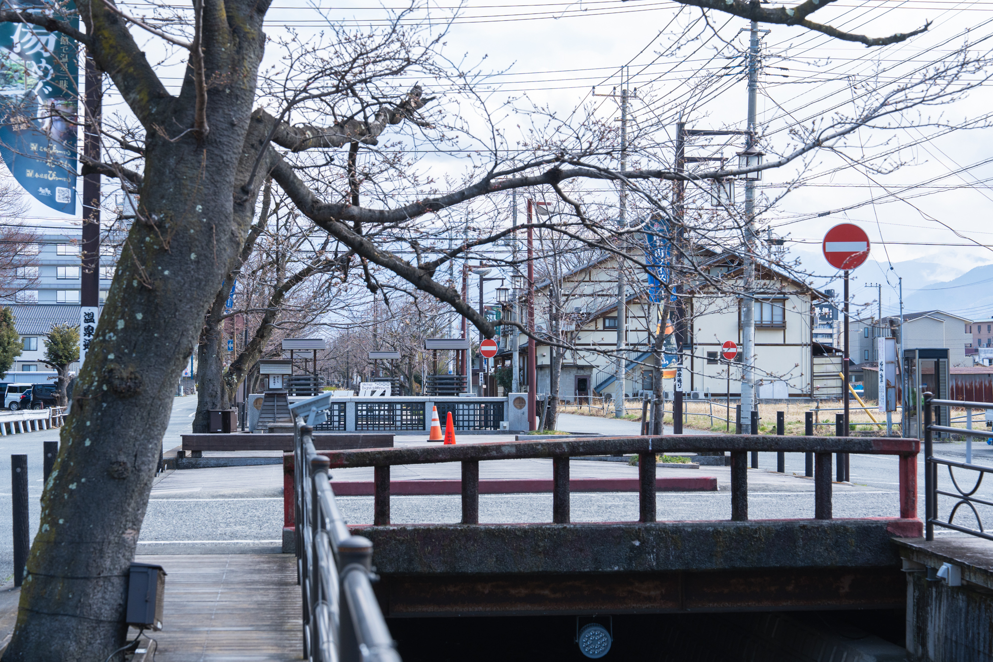 石和町さくら温泉通り 曇り 12℃ 2026年3月16日(月)午前撮影