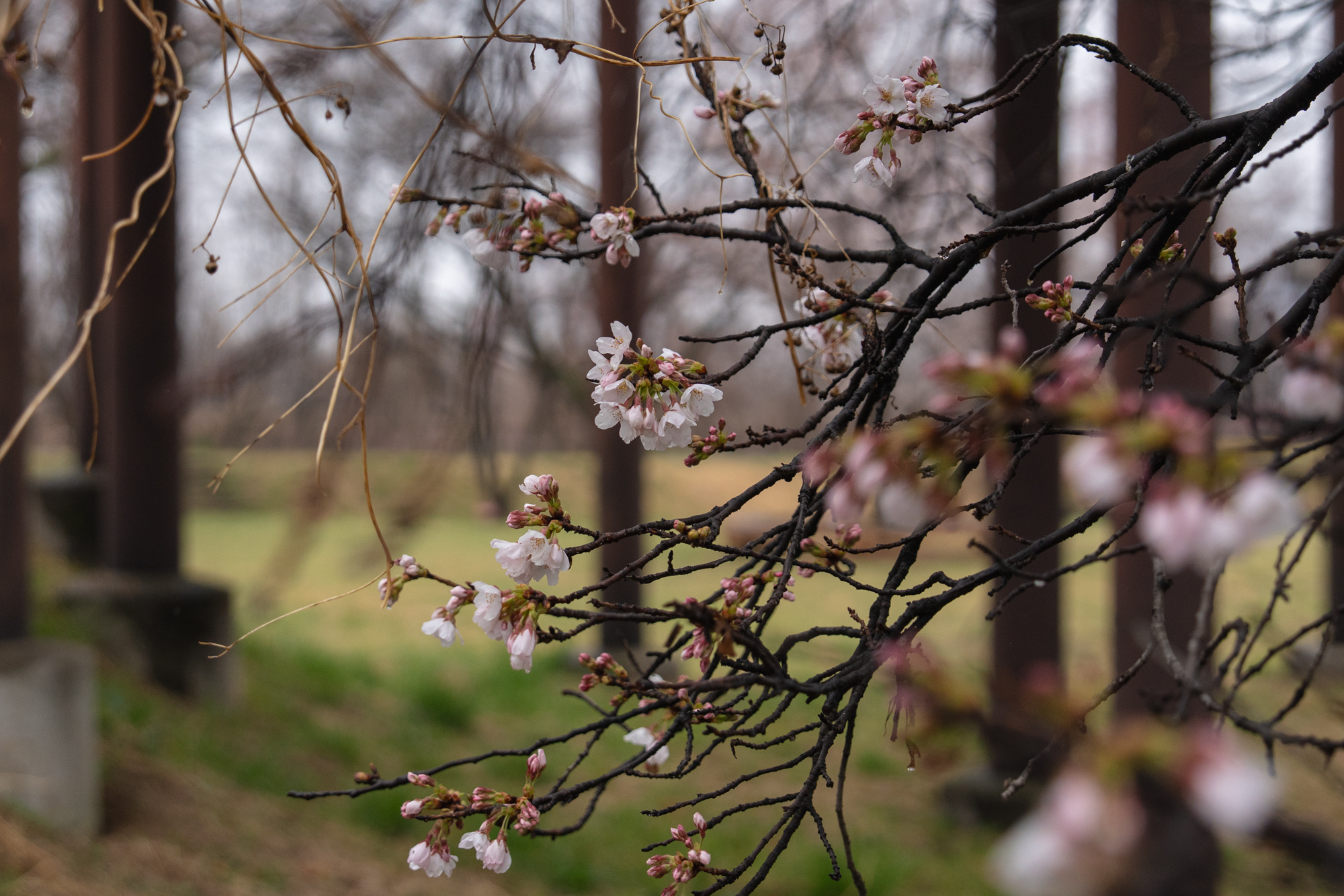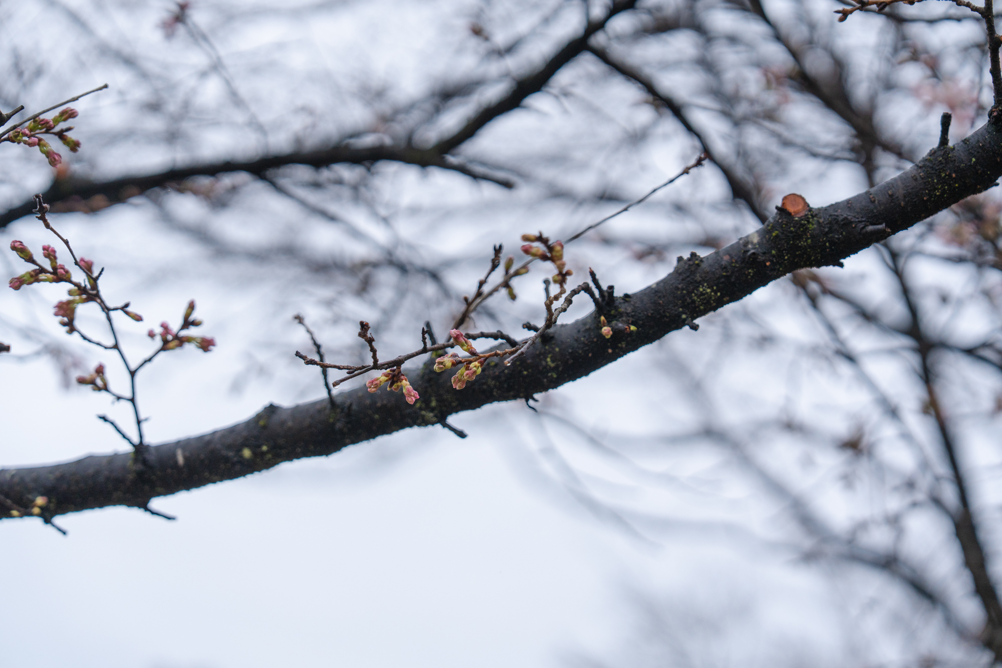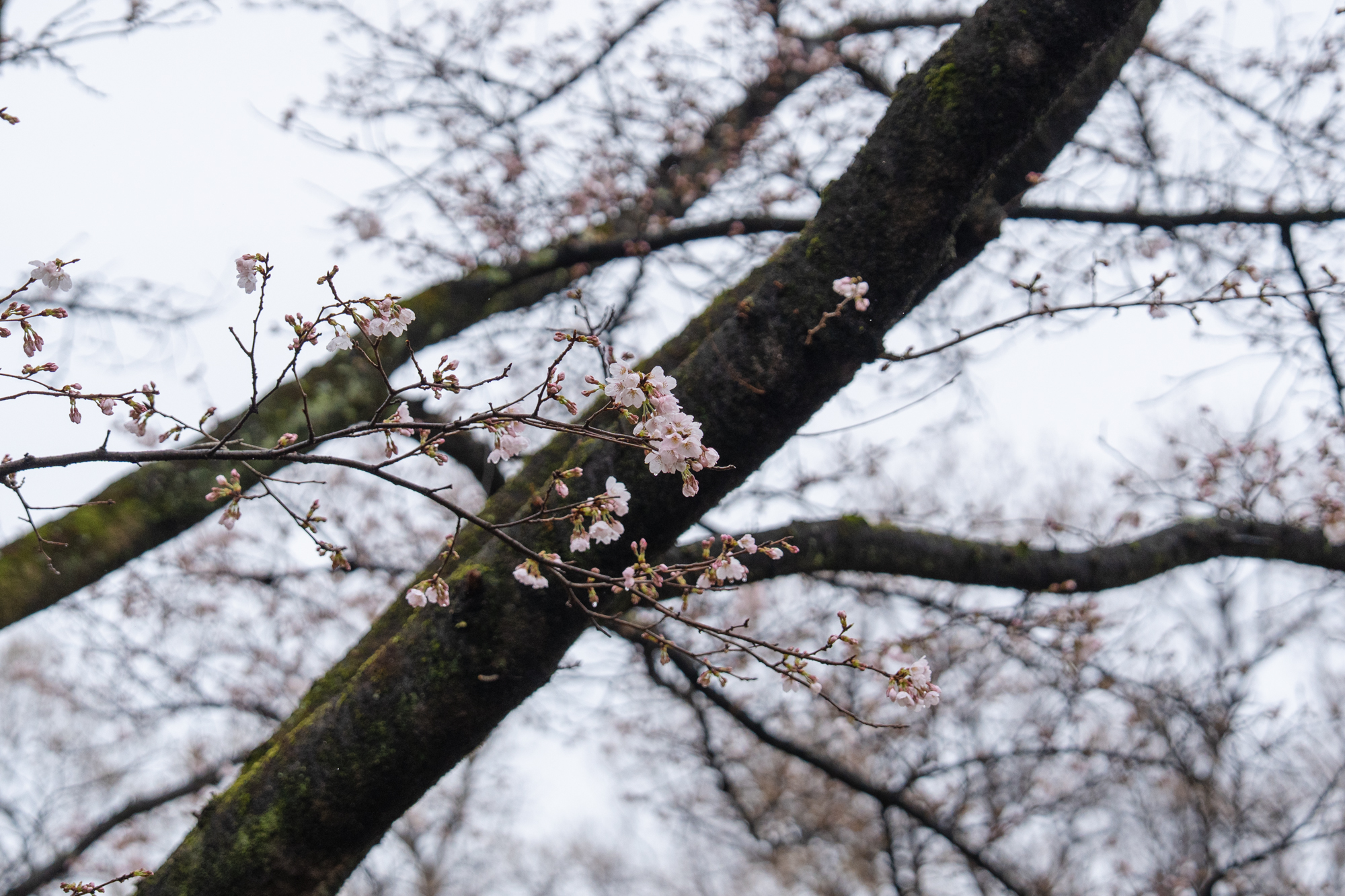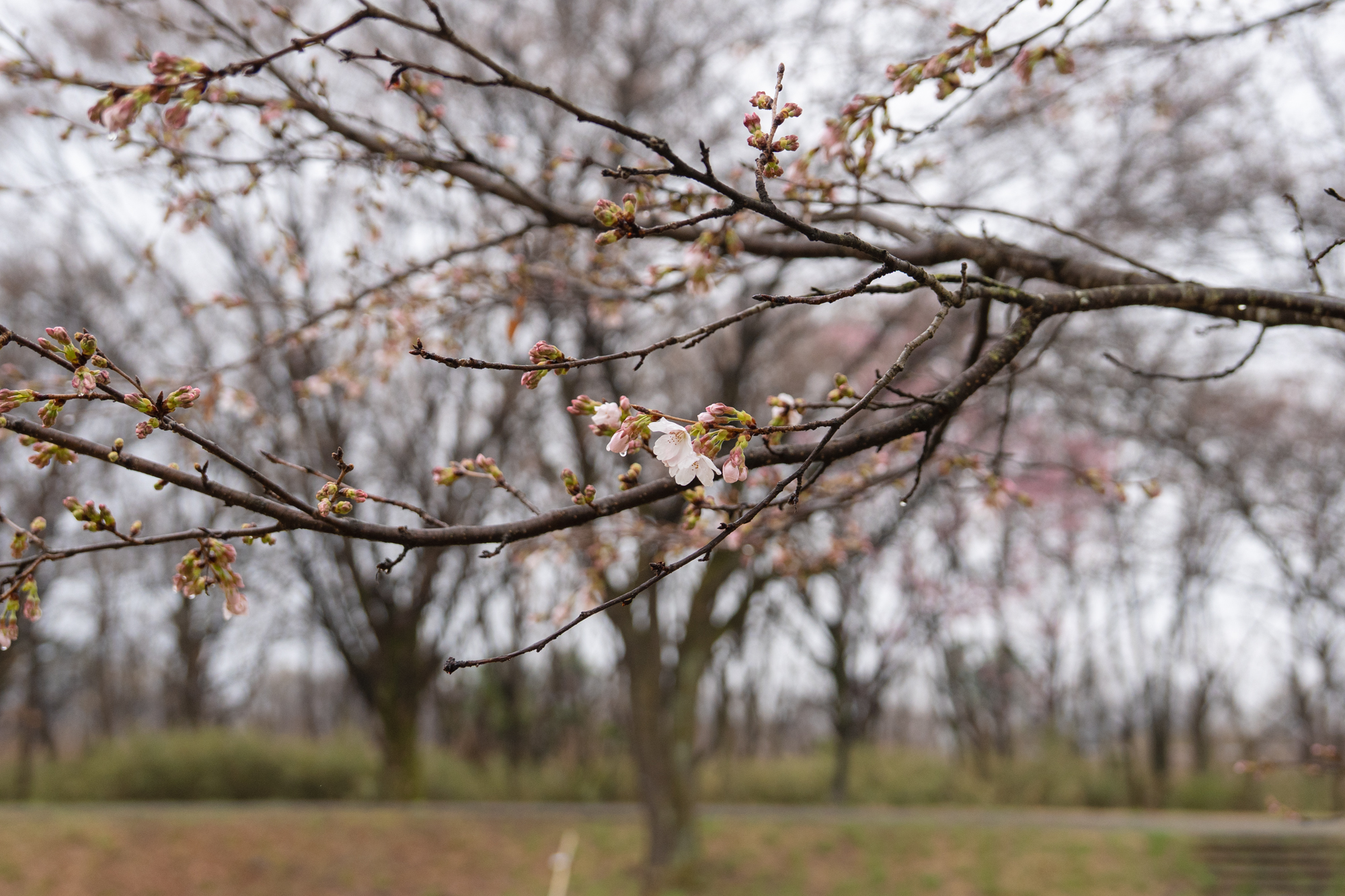 小雨の今日、早咲きの木では雨に打たれ、花びらが早くも散り始めていました。一方で、ほかの木でも開花が進み、約10本ほどの木で綺麗な花が確認できました。とはいえ、まだまだこれからが本番です。