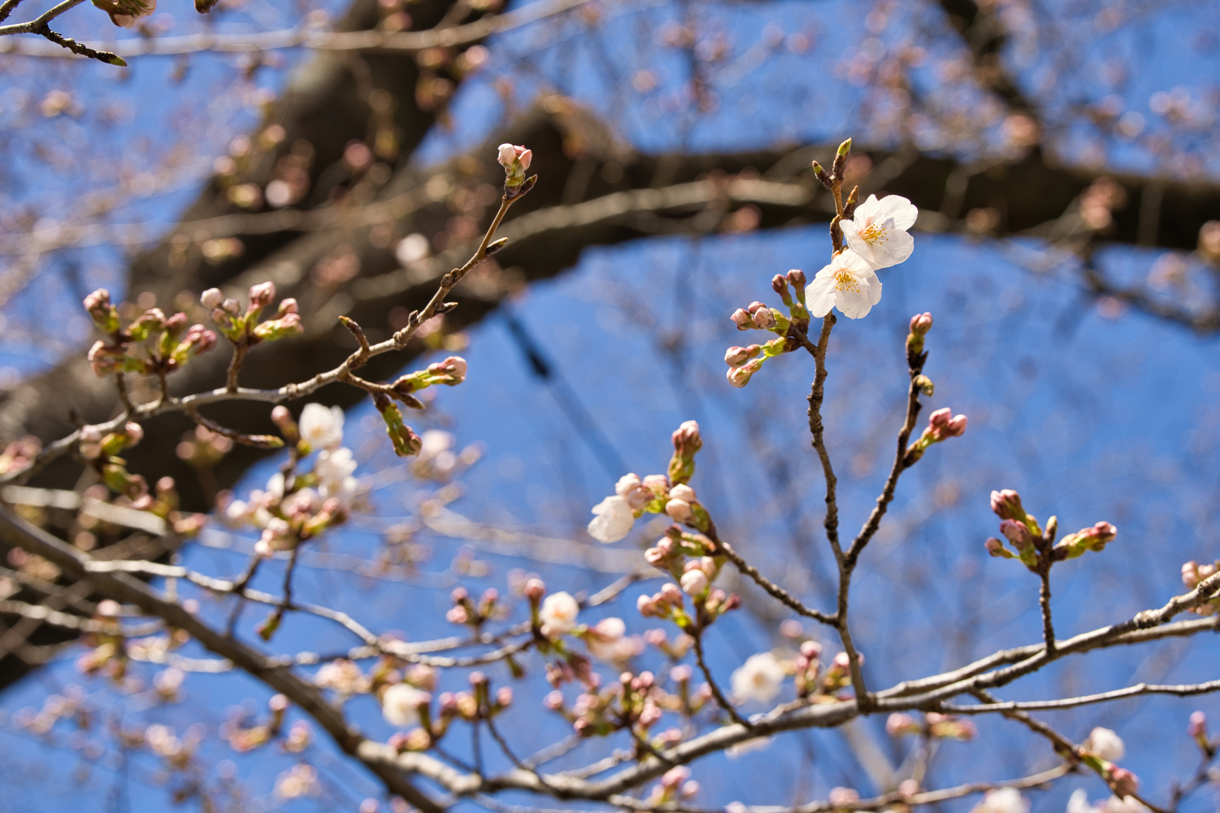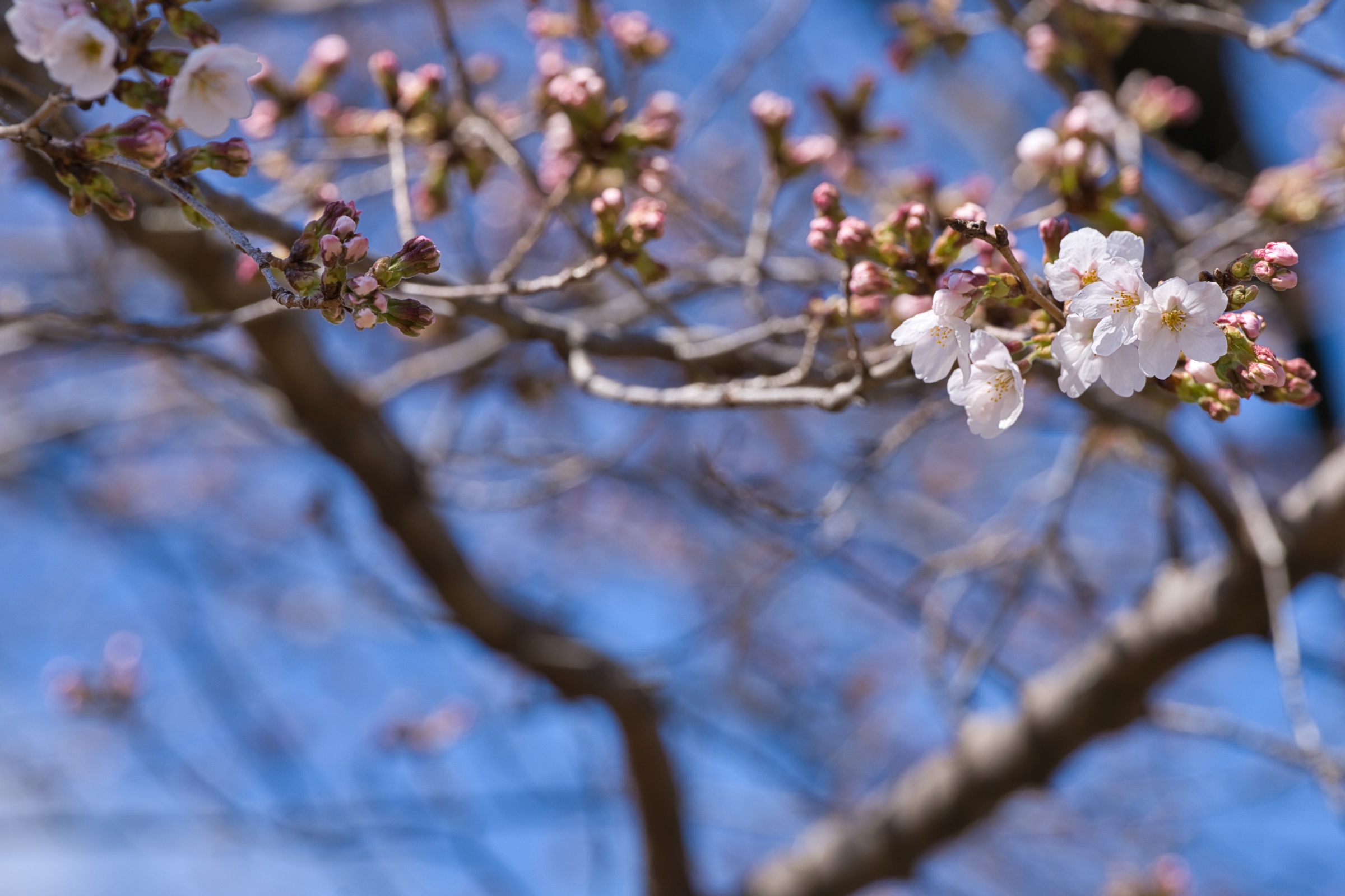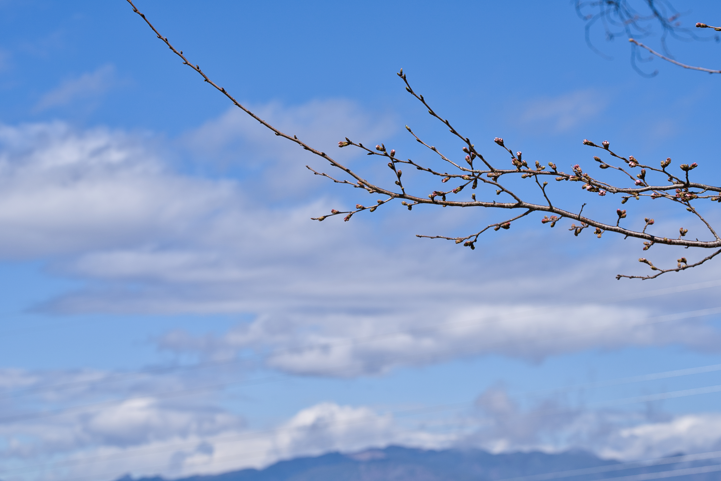 昨日に続いての更新となります。雨が上がり、気温もぐんぐんと上がってきていた午前のお昼に近い時間帯での撮影となりました。そんな時間帯なので、ベンチや木陰でお弁当を広げている人たちも多く見られ、また既に咲き始めているヒガンザクラにスマホを向ける姿も多く見られました。いよいよ百花繚乱、笛吹市の春を満喫できる時期に入ってきました。さて、今日のふるさと公園の甲州蚕影桜ですが、昨日咲きかけていた蕾は見事に咲いており、他の枝でも多くの蕾が開花直前モードです。この数日で咲き始め来週に入ると見頃を迎えそうです。