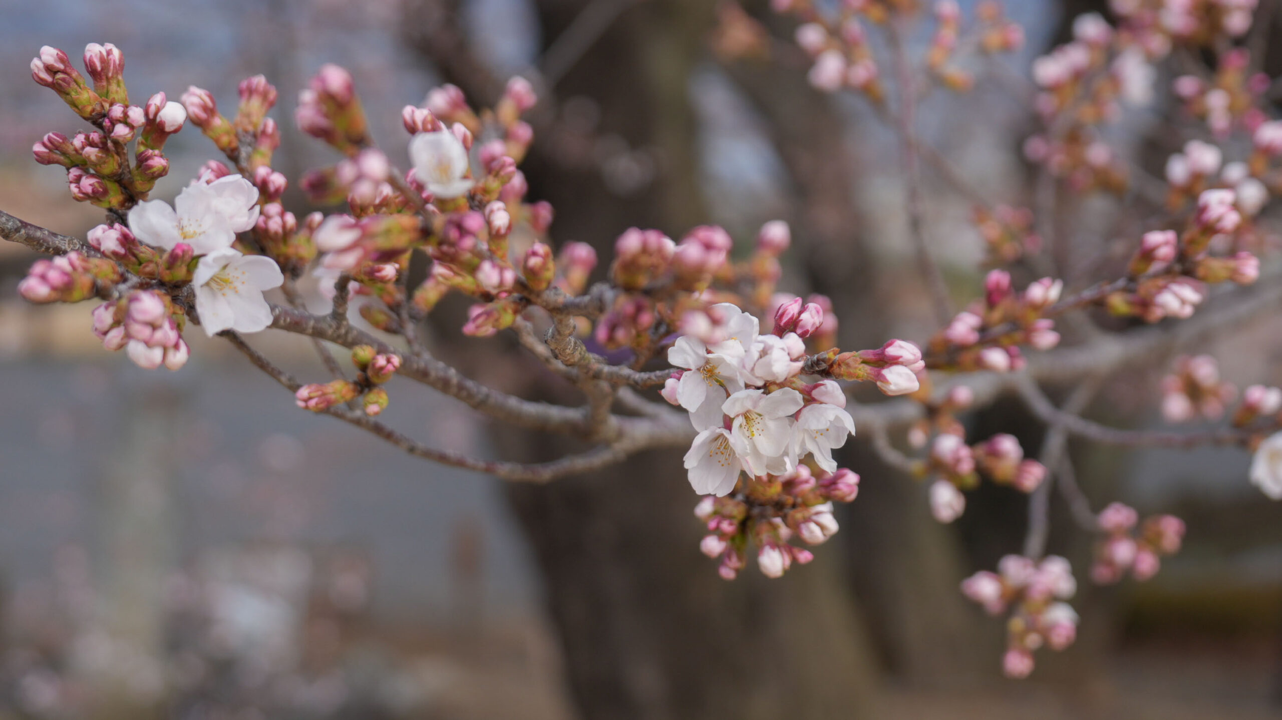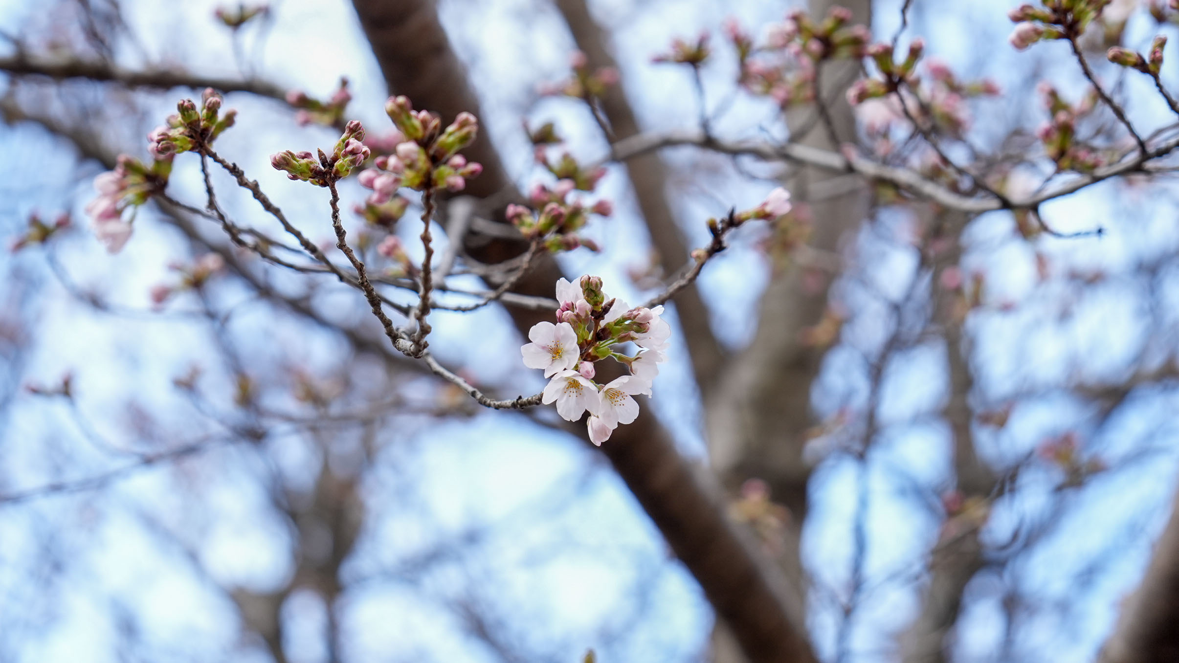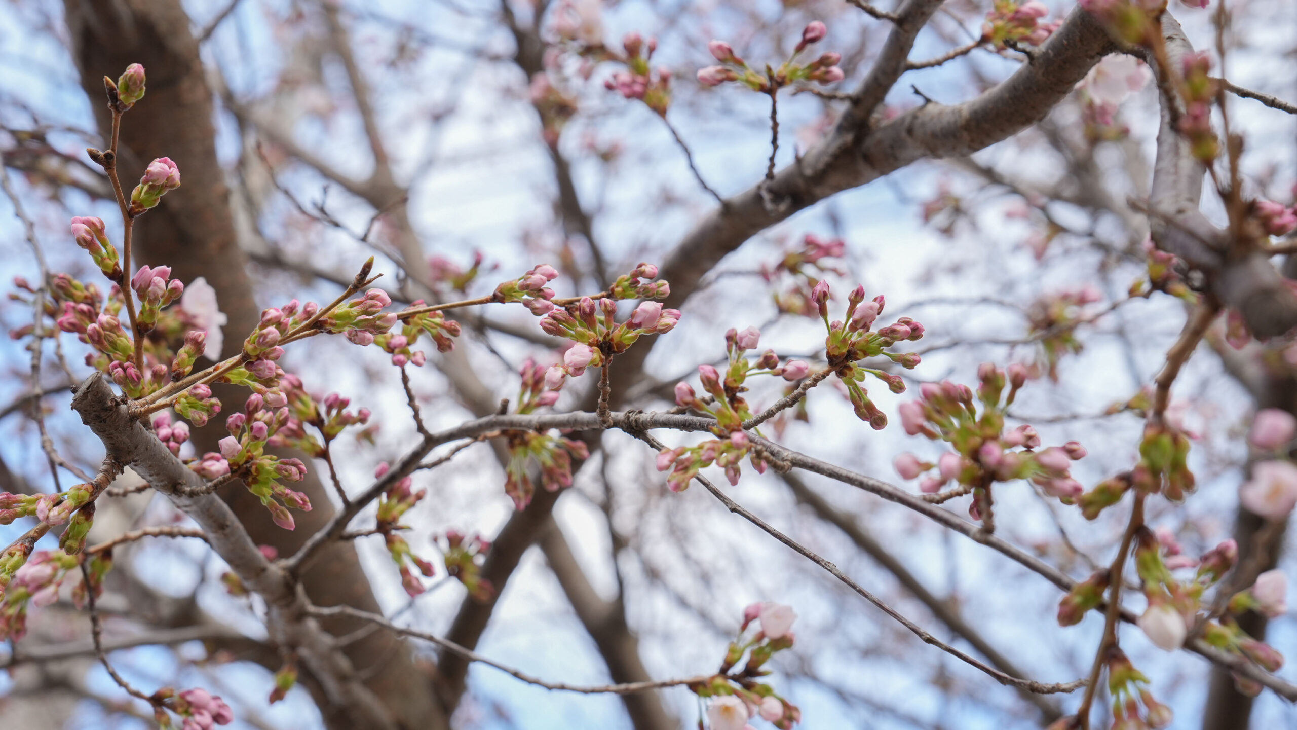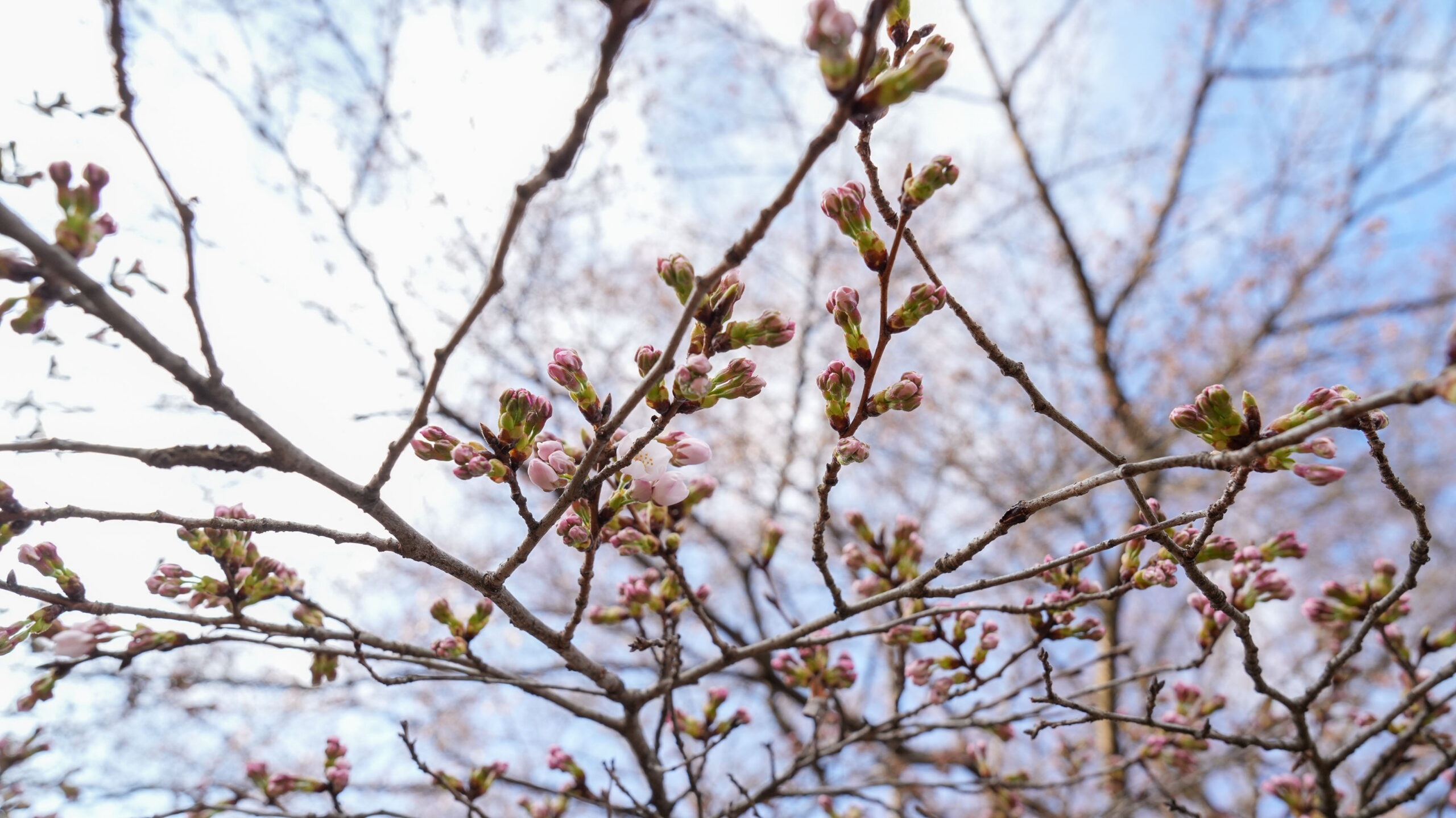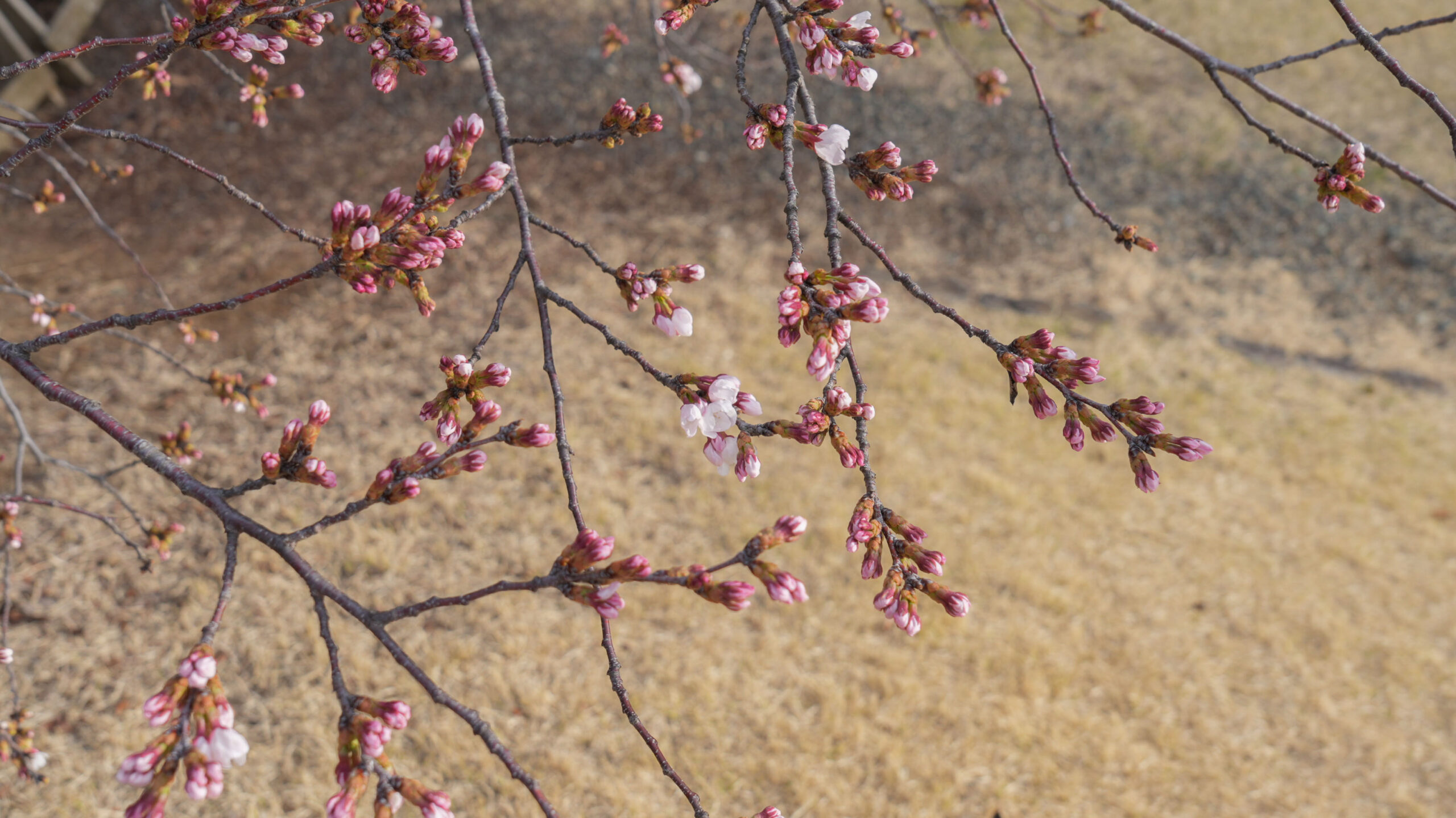昨日の暖かさにより甲州蚕影桜は開花した所も少しずつ増えて、今にも開花しそうな蕾もたくさん確認できました。第一駐車場付近も甲州蚕影桜と同じような咲き具合いでした。一方、遊具付近のヒガンザクラは一足先に見頃を迎えており、園内に彩りを添えています。本日は祝日ということもあり早朝から散歩を楽しまれる方の姿が多く見られました。予報通り週末も暖かい日が続けば、一気に桜色が濃くなりそうです。お散歩される方々も、日に日に変化する風景を楽しむことができるのではないでしょうか。