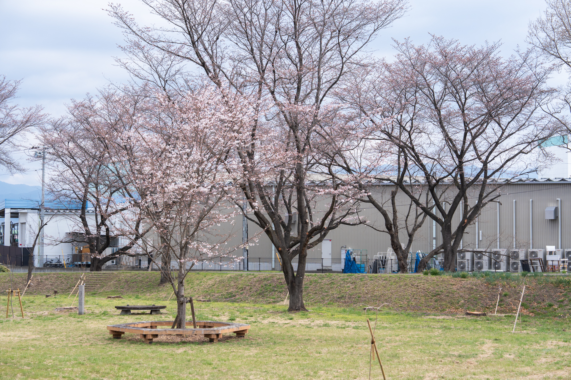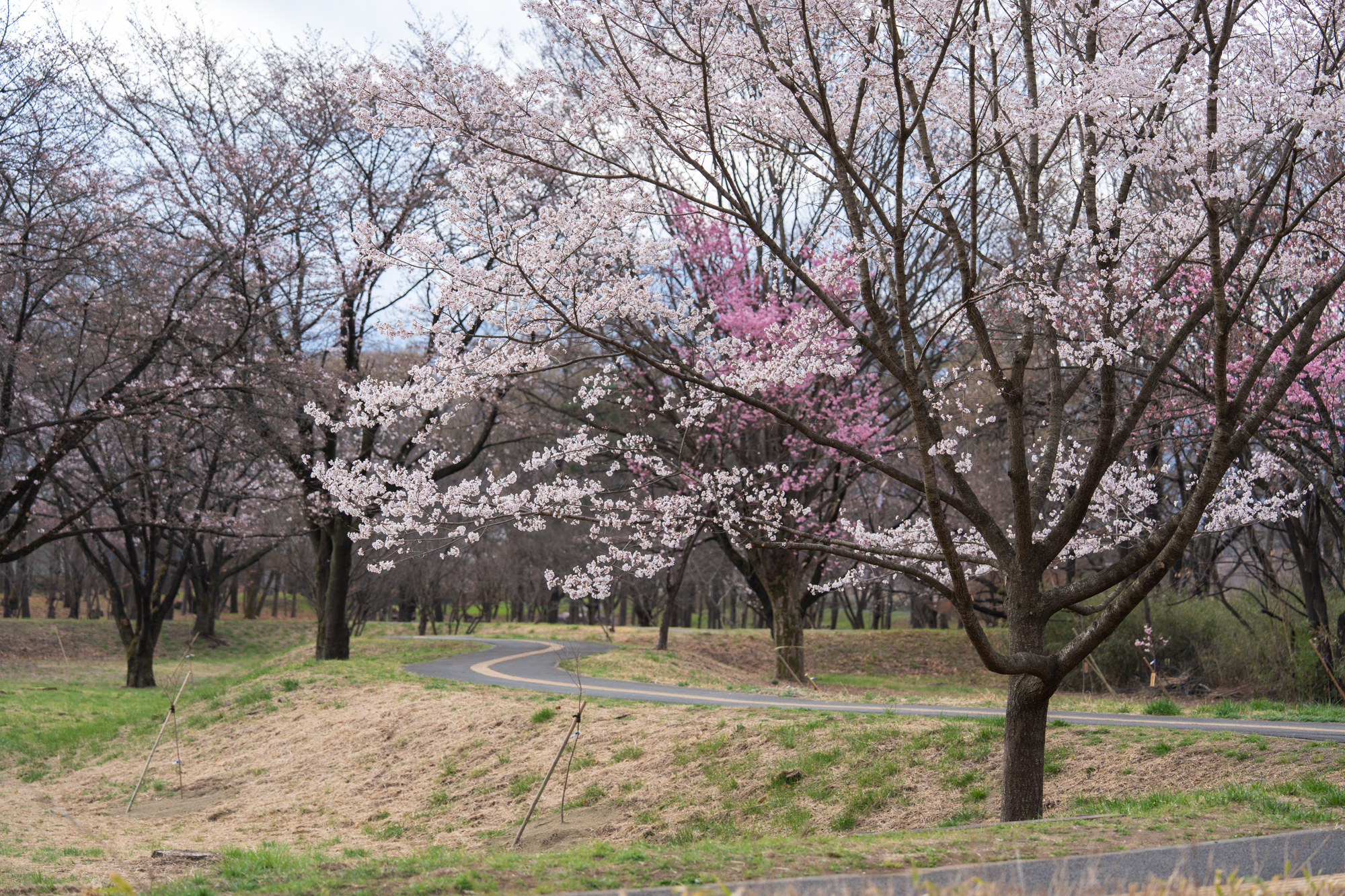 昨年と比べると、さくらの森全体がだいぶすっきりとした印象です。老木の伐採と新たな植樹が進められており、景観の美しさと安全性が保たれている様子がうかがえます。