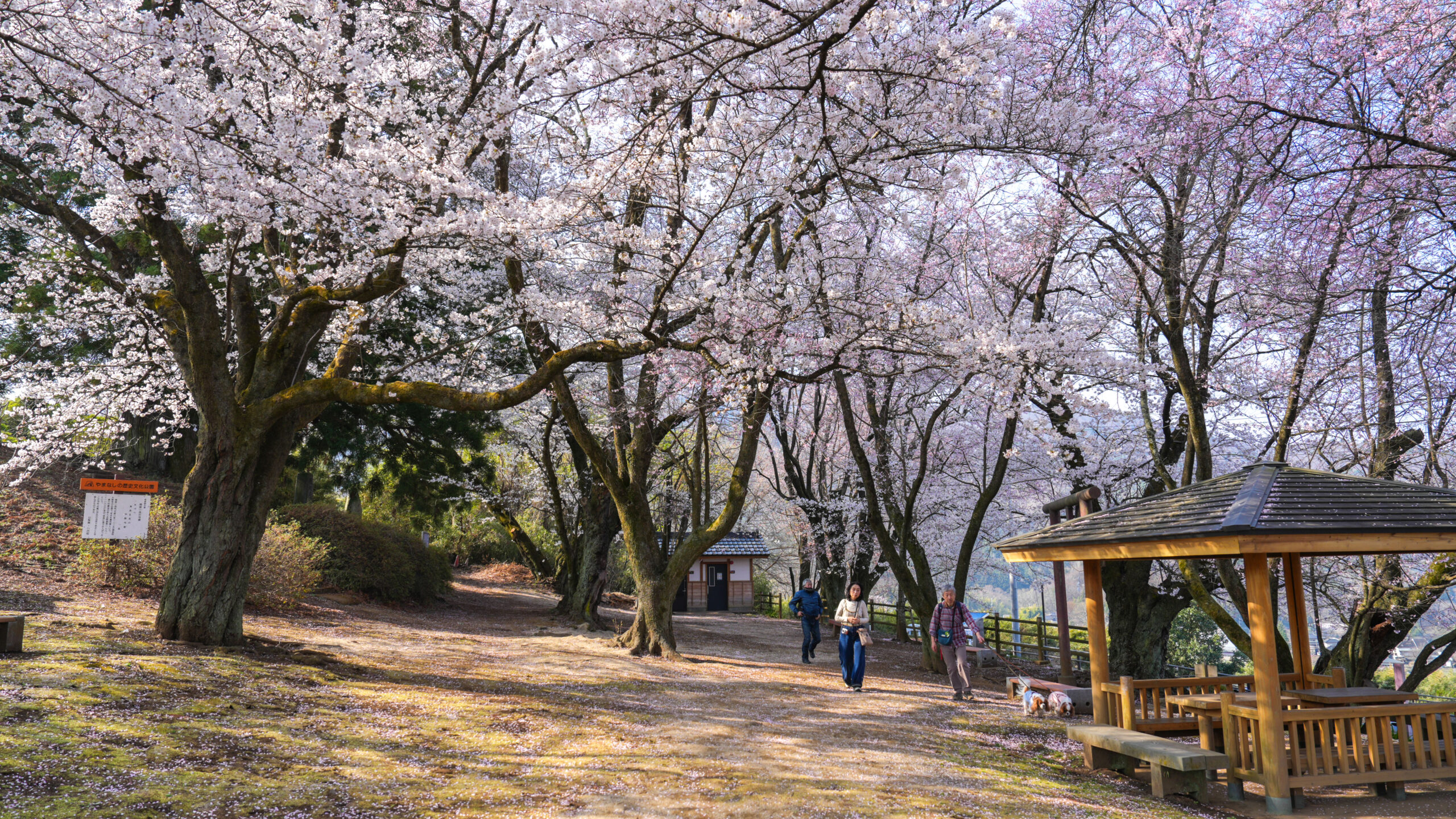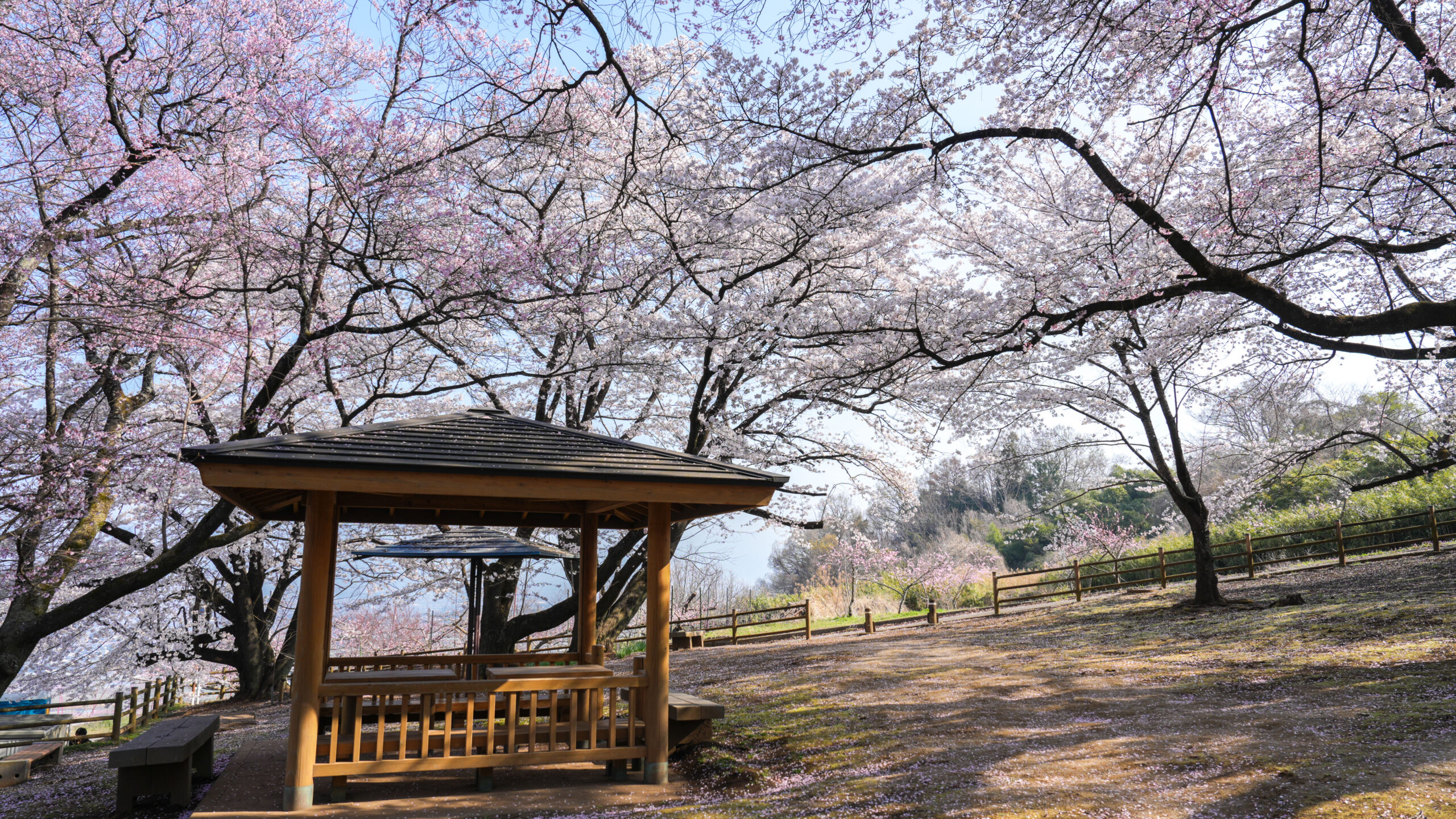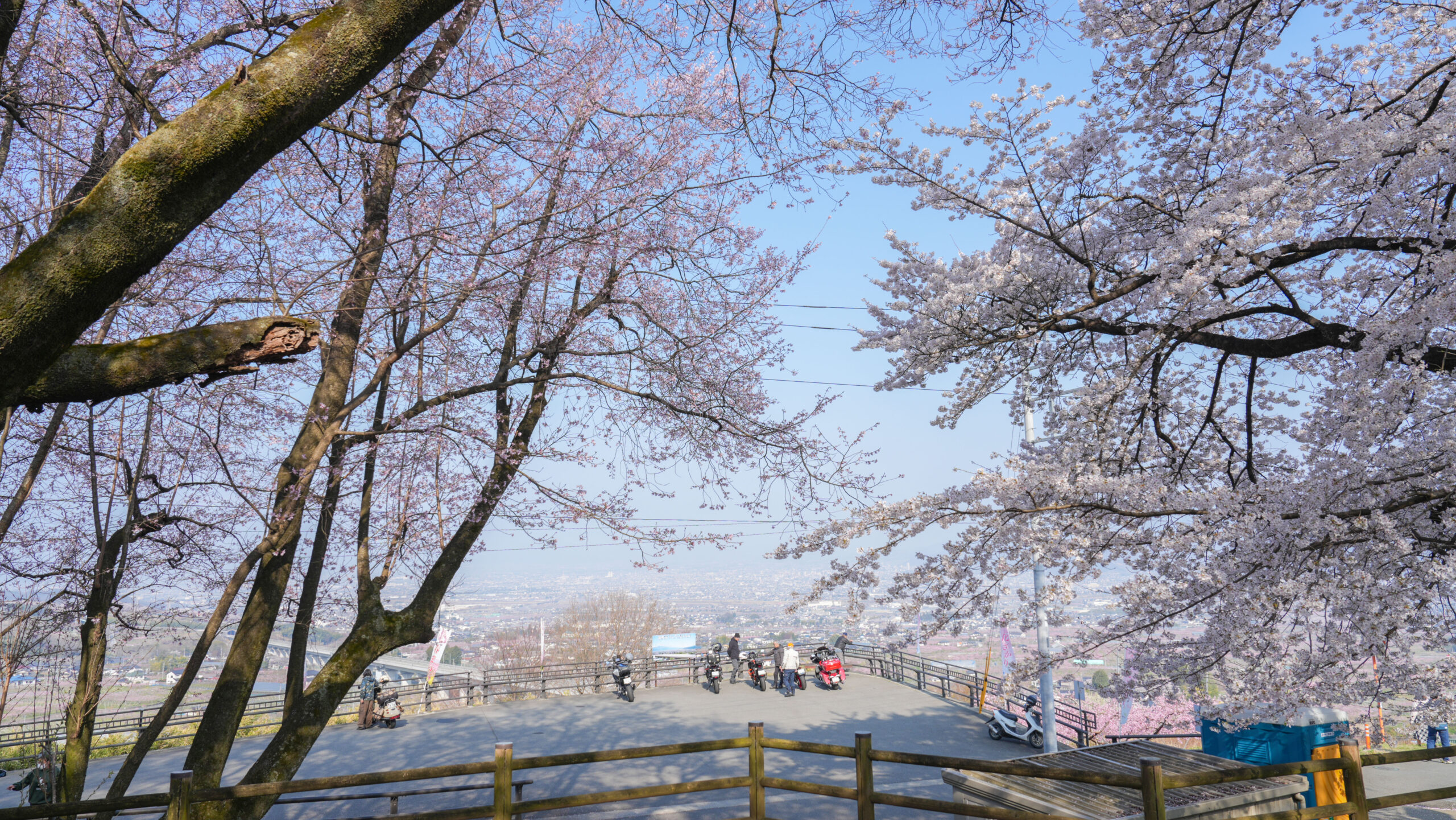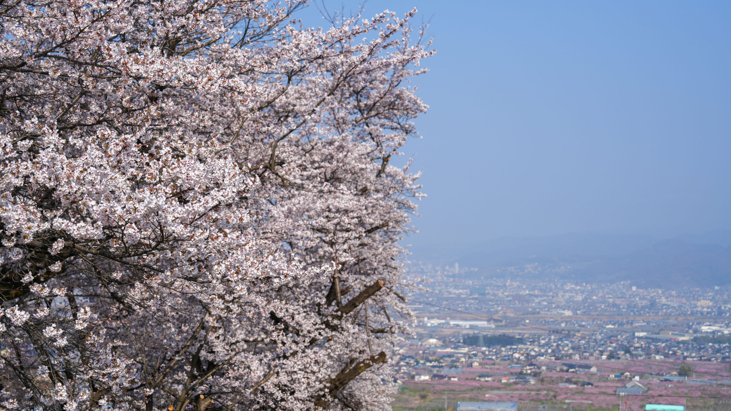 花鳥山の桜開花情報6回目の更新です。今朝から県外からも多くの方にお越しいただき、駐車場も6割ほど埋まっております。 現在、花鳥山のソメイヨシノは満開を迎え、まさに最高の見頃です。一方、ヒガンザクラは散り始めており、見頃を過ぎました。 また、眼下には桃の花も一面に広がっており、今だけの絶景をお楽しみいただけます。